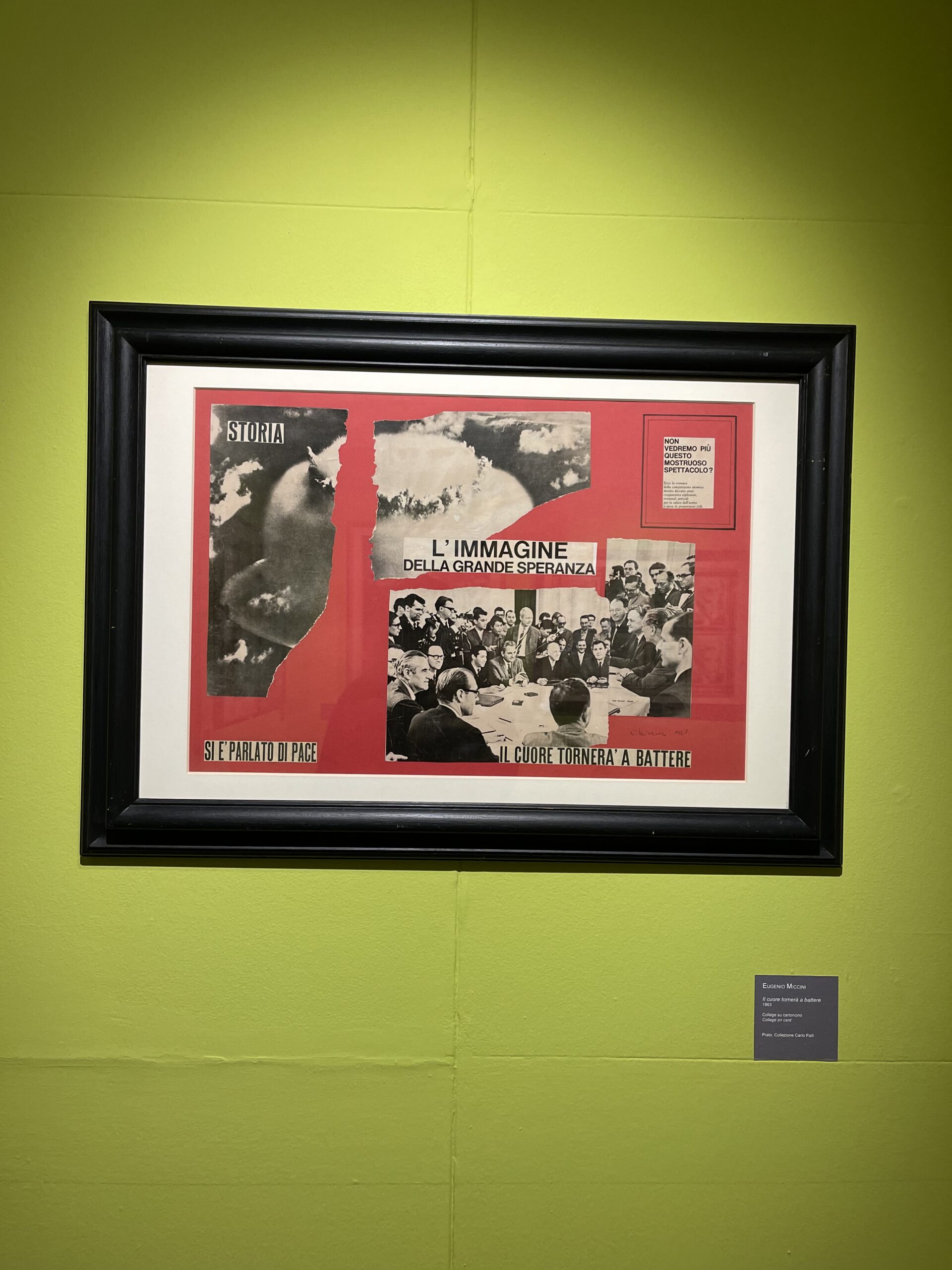 Il primo dicembre 2023 ha inaugurato alla Galleria d’Arte Moderna di Roma la mostra “La poesia ti guarda”. In occasione dei sessant’anni dalla nascita del Gruppo 70, un collettivo artistico che attraverso l’arte visiva metteva in discussione la società contemporanea, la galleria di Roma ha allestito una mostra che raccoglie numerosi collage-provocazione più attuali che mai.