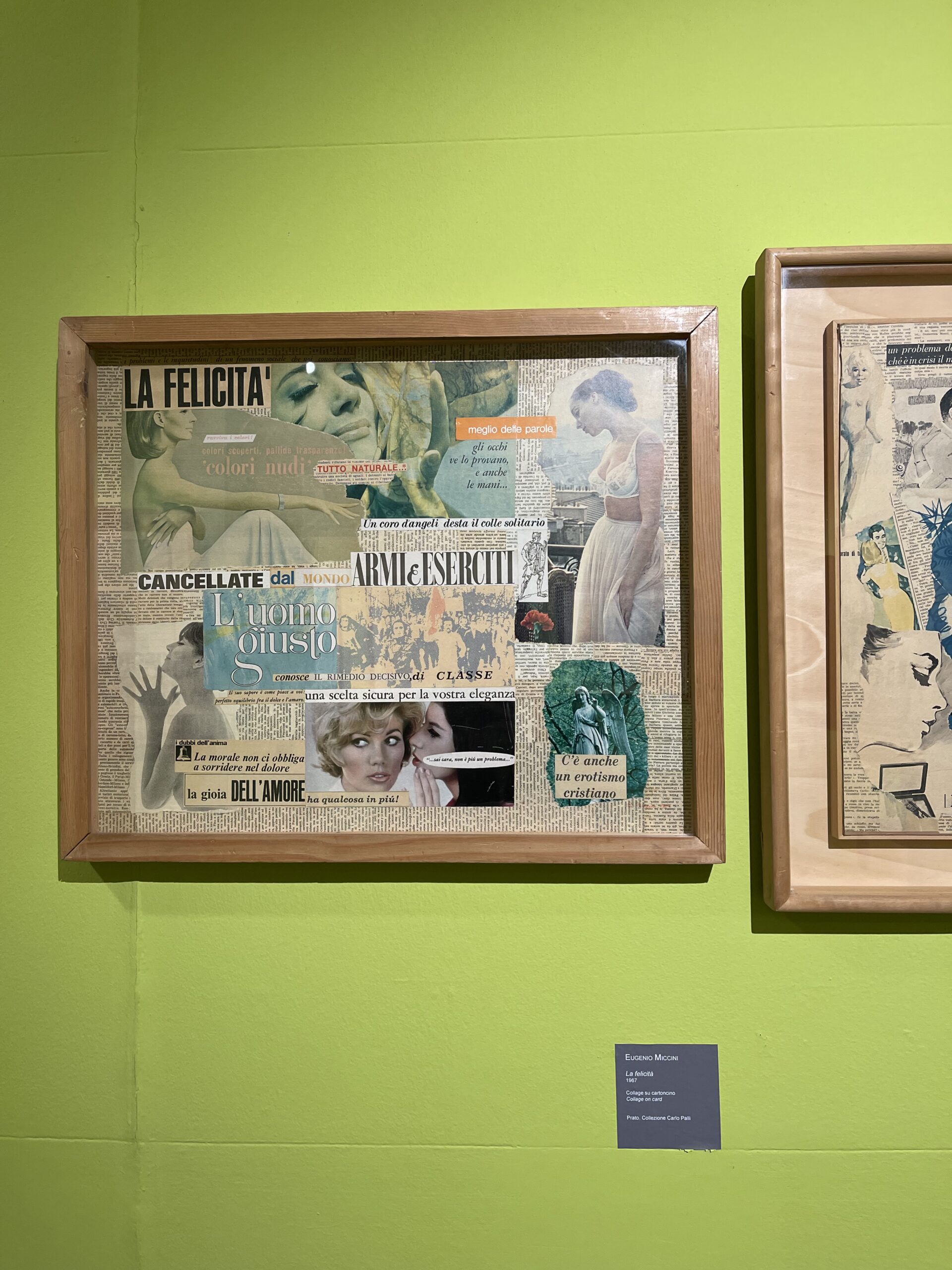 In questa gallery trovate alcuni dei collage che ci hanno colpito di più ci sono anche opere di Ketty La Rocca, un’artista sostenuta molto anche da Maria Grazia Chiuri per le sue opere femministe, Eugenio Miccini, Lamberto Pignotti e Luciano Ori. La mostra «La poesia ti guarda» Omaggio al Gruppo 70 (1963-2023) è a cura di Daniela Vasta e promossa da Roma Capitale, Assessorato alla Cultura, Sovrintendenza Capitolina ai Beni Culturali, in collaborazione con l’Archivio Carlo Palli di Prato, l’Archivio Lamberto Pignotti di Roma e la Fondazione Bonotto di Molvena (VI). Organizzazione di Zètema Progetto Cultura.