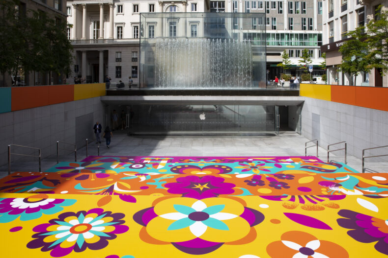 Anche quest’anno i gradoni antistanti l’ingresso dello store Apple Piazza Liberty si colorano in occasione del Milano Pride 2023 con una particolare installazione grafica curata da Illustri Festival, sotto la guida di Francesco Poroli.