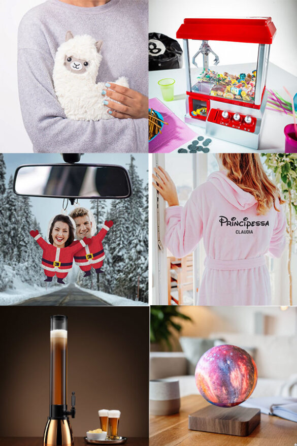 Tra le vostre conoscenze c’è chi ama i lunghi bagni caldi? Bene ecco le bombe al Gin Tonic da immergere. E se c’è chi ama le lampade speciali ecco quella a forma di pianeta fluttuante o di sorpresa del mitico Super Mario. Per chi invece si cimenta ai fornelli perché non regalare un grembiule personalizzato con foto ricordo – magari in cui siete immortalati/e insieme? Per le serate più goliardiche c’è una torre da riempire di birra per trasformare la vostra cucina nel più cool dei pub.