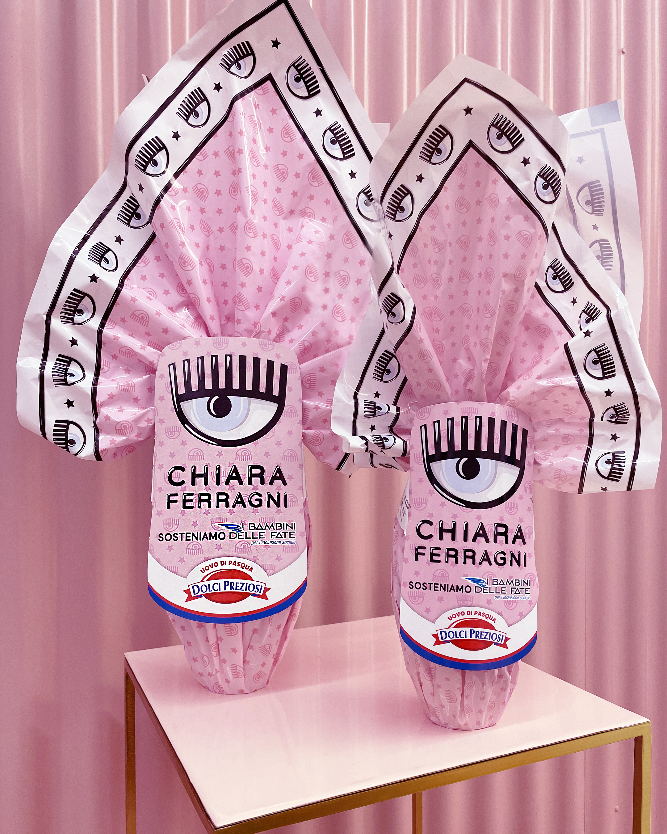 Ma come saranno le uova Chiara Ferragni x Dolci Preziosi? Il packaging porta con sé tutti gli elementi chiave del suo brand: il simbolo Eyelike, con il famoso occhio, la banda Logomania e le iconiche tinte rosa pastello. Tra le sorprese contenute all’interno del guscio di cioccolato al latte ci saranno gadget super cute come pettini giocattolo a forma di Eyelike, tatuaggi removibili, carte da gioco e molto altro. Le uova saranno disponibili in due formati da 280gr e 150gr.