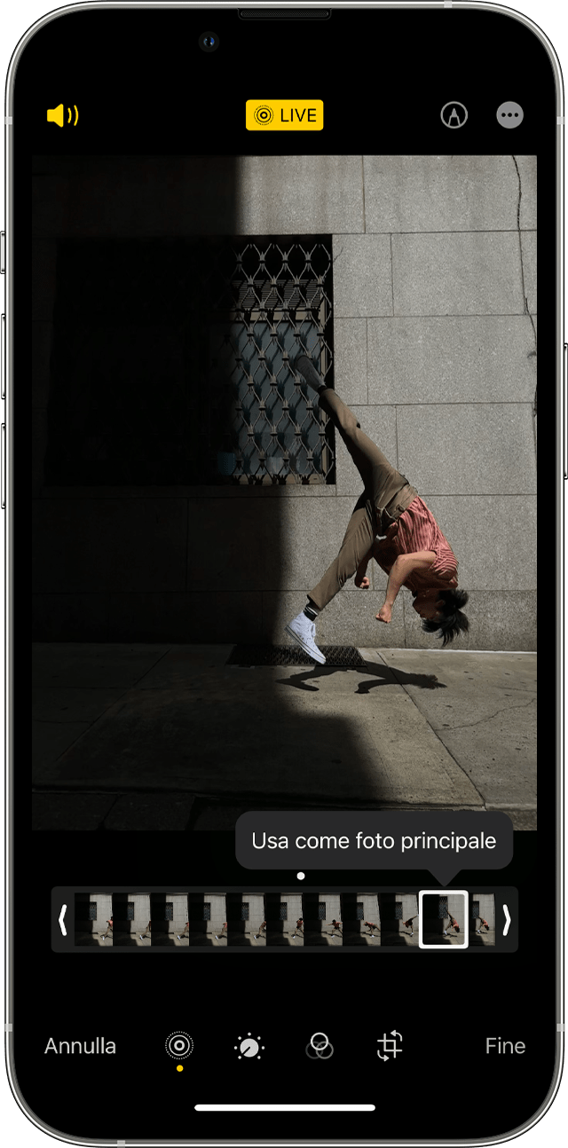 - Scatta una Live Photo per un effetto inaspettato: iPhone registra ciò che accade 1,5 secondi prima e dopo lo scatto, permettendo poi di scegliere una foto principale diversa, aggiungere un effetto divertente, modificare e condividere il risultato con amici, amiche e parenti. Scondinzolate incluse.