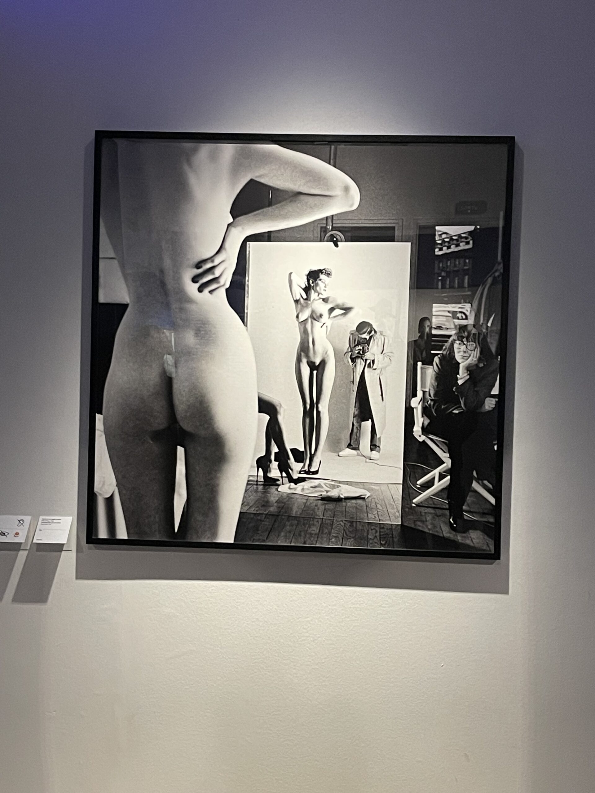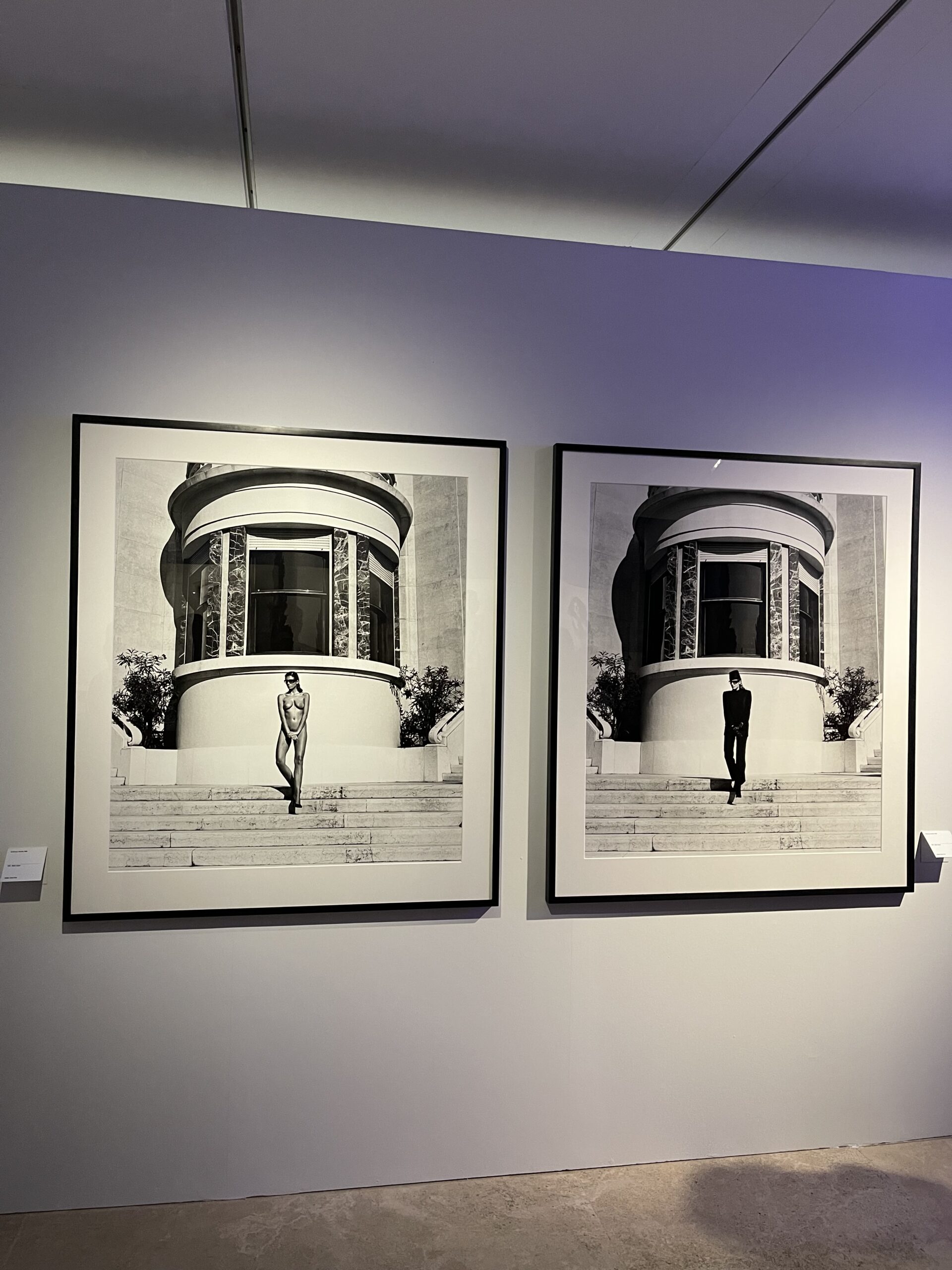 La mostra di apre con due ritratti, quelli di Helmut Newton con una camera in mano e quello di Alice Springs, sua moglie e anche lei fotografa. La coppia lavorava spesso insieme, Newton collaborava con Springs sia nella ricerca delle ispirazioni per i suoi scatti sia inserendola in alcune delle sue fotografie diventate iconiche  (foto 2, Alice Springs è seduta sulla sedia).