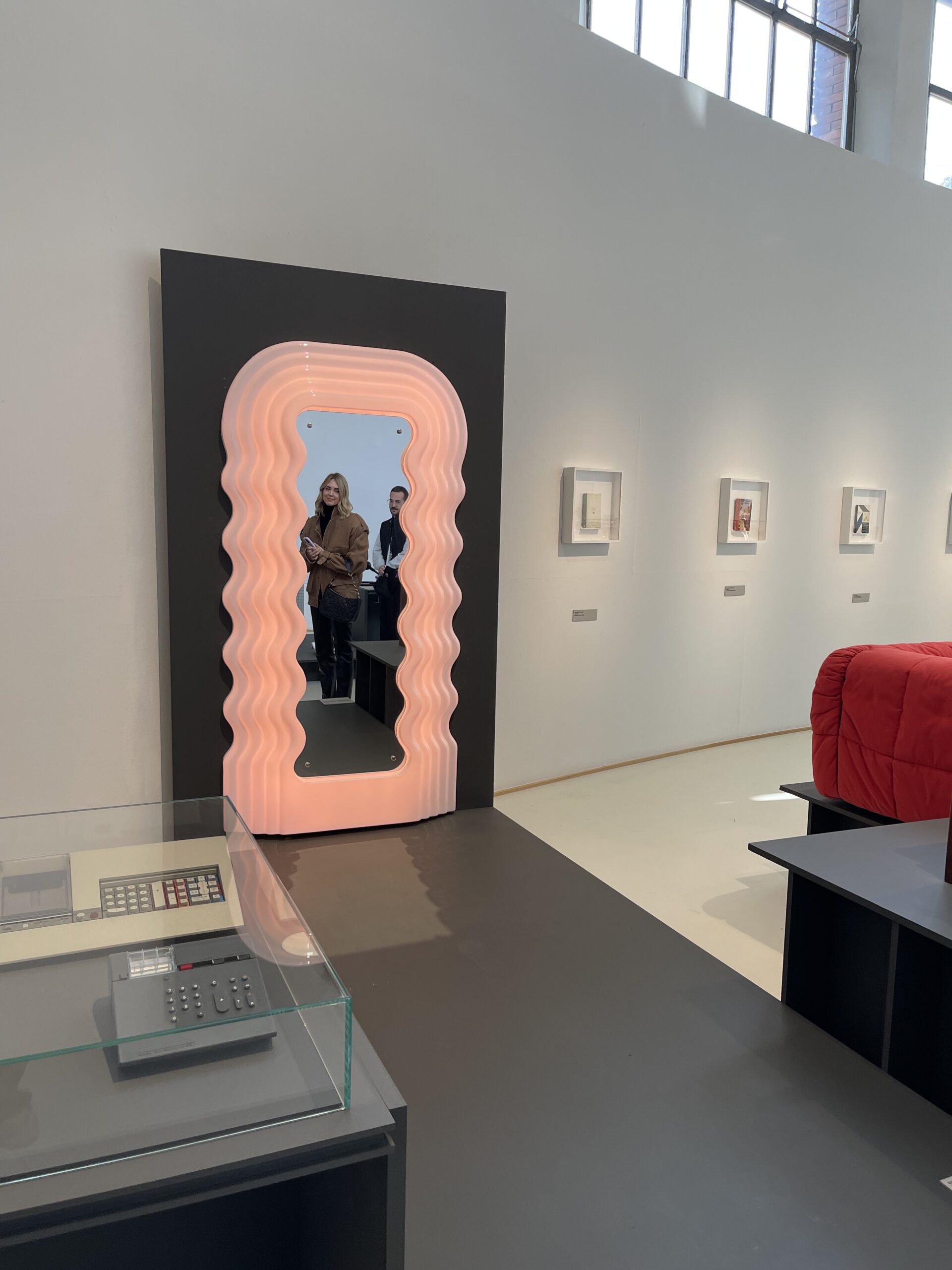 Lo specchio Ultrafragola di Ettore Sottsass, appartenente alla serie “Mobili Grigi” fu designato nel 1970 e al tempo fu un simbolo di viaggio introspettivo nel riflesso dello specchio, e di autodeterminazione. La forma ondulata, che richiama la chioma femminile, e il colore rosa utilizzato per convenzione per rappresentare le donne, vengono utilizzati per superare la divisione di genere perché applicati su un oggetto che di base non è pensato solo per una catergoria di persone.