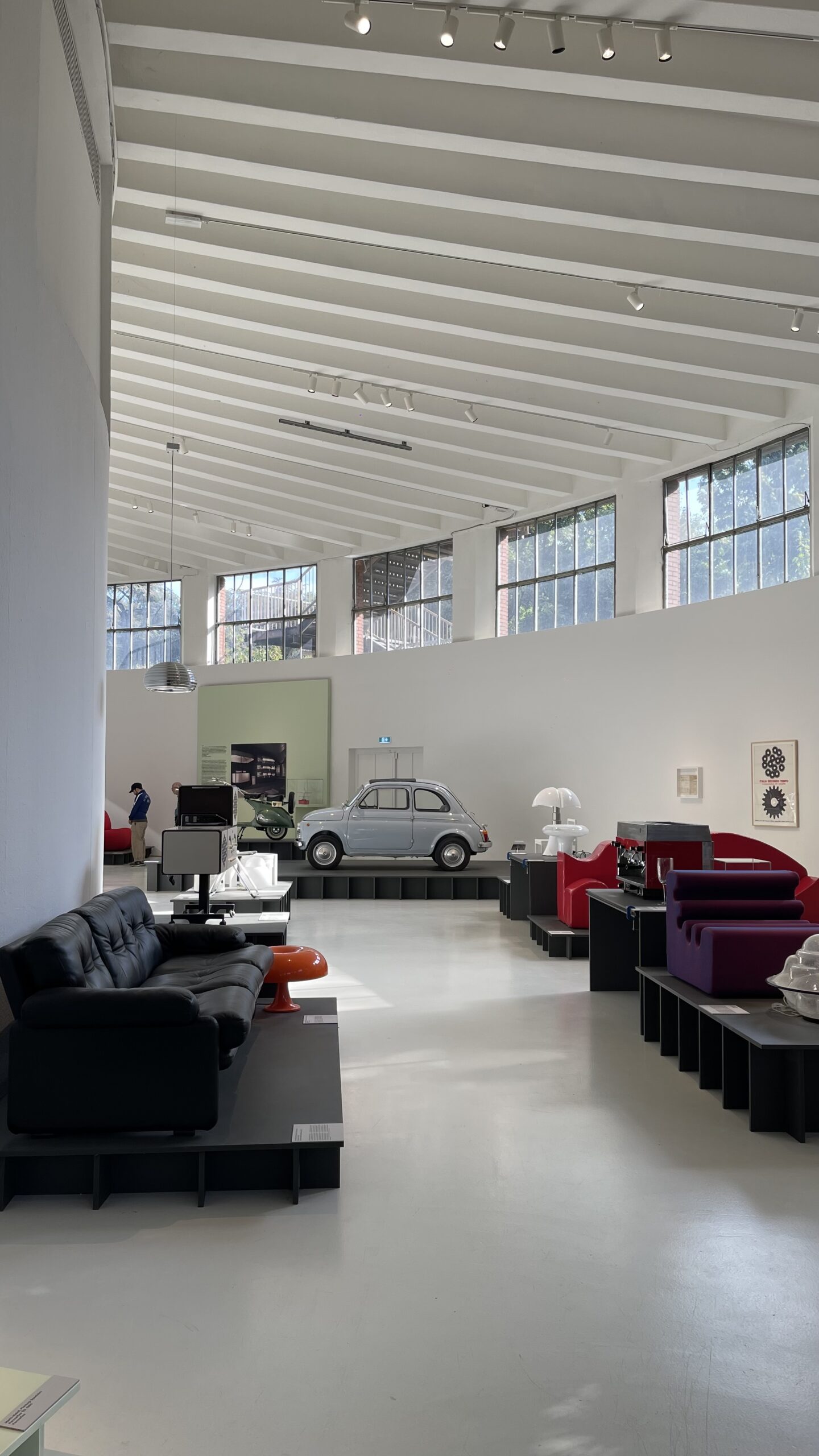 In esposizione ci sono oltre 300 pezzi che hanno fatto la storia del design in Italia e fuori, per citarne alcuni: la macchina da scrivere Olivetti, la Vespa, la Cinquecento, lo specchio Ultrafragola di Ettore Sottsass e la Nesso di Artemide.