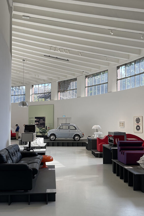 Sottsass fu anche il fondatore del collettivo Memphis, caratterizzato da uno stile pop, colorato e allo stesso tempo kitsch (piccola curiosità fashionista: tra i suoi estimatori c’era anche Karl Lagerfeld). Sulla piattaforma finale del Museo del Design Italiano al momento sono esposti una sedia e l’iconica libreria Carlton.