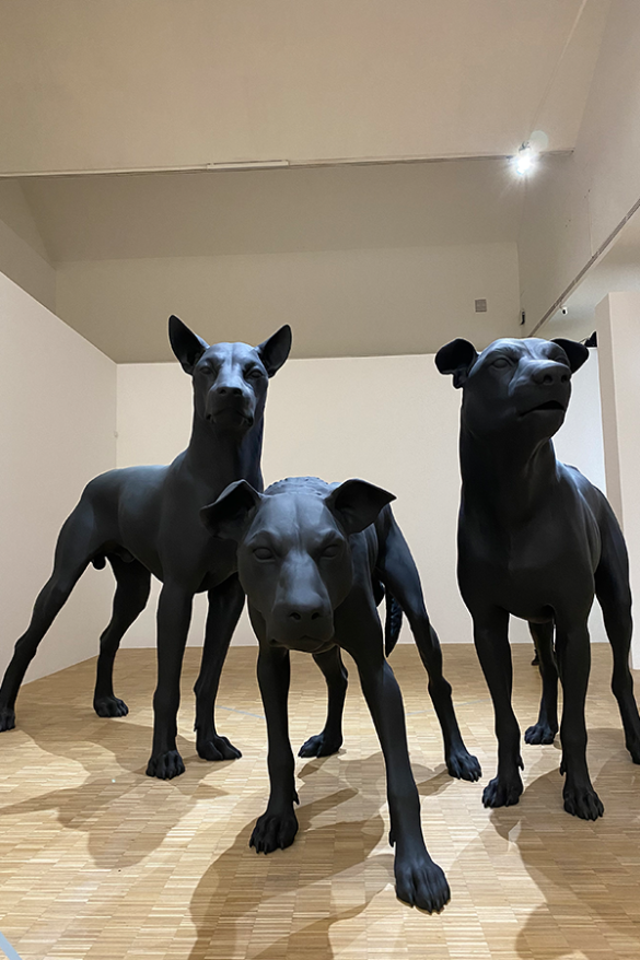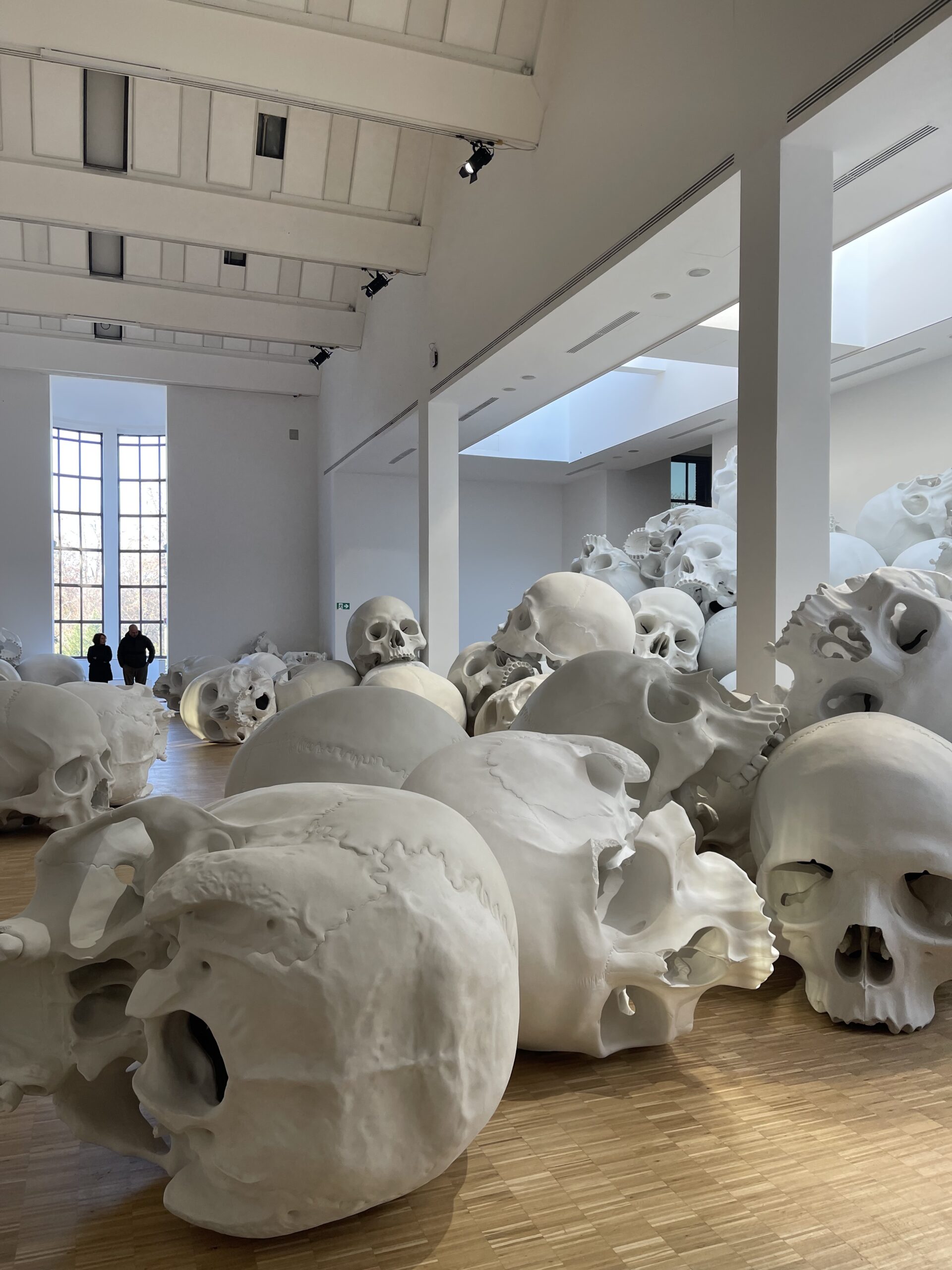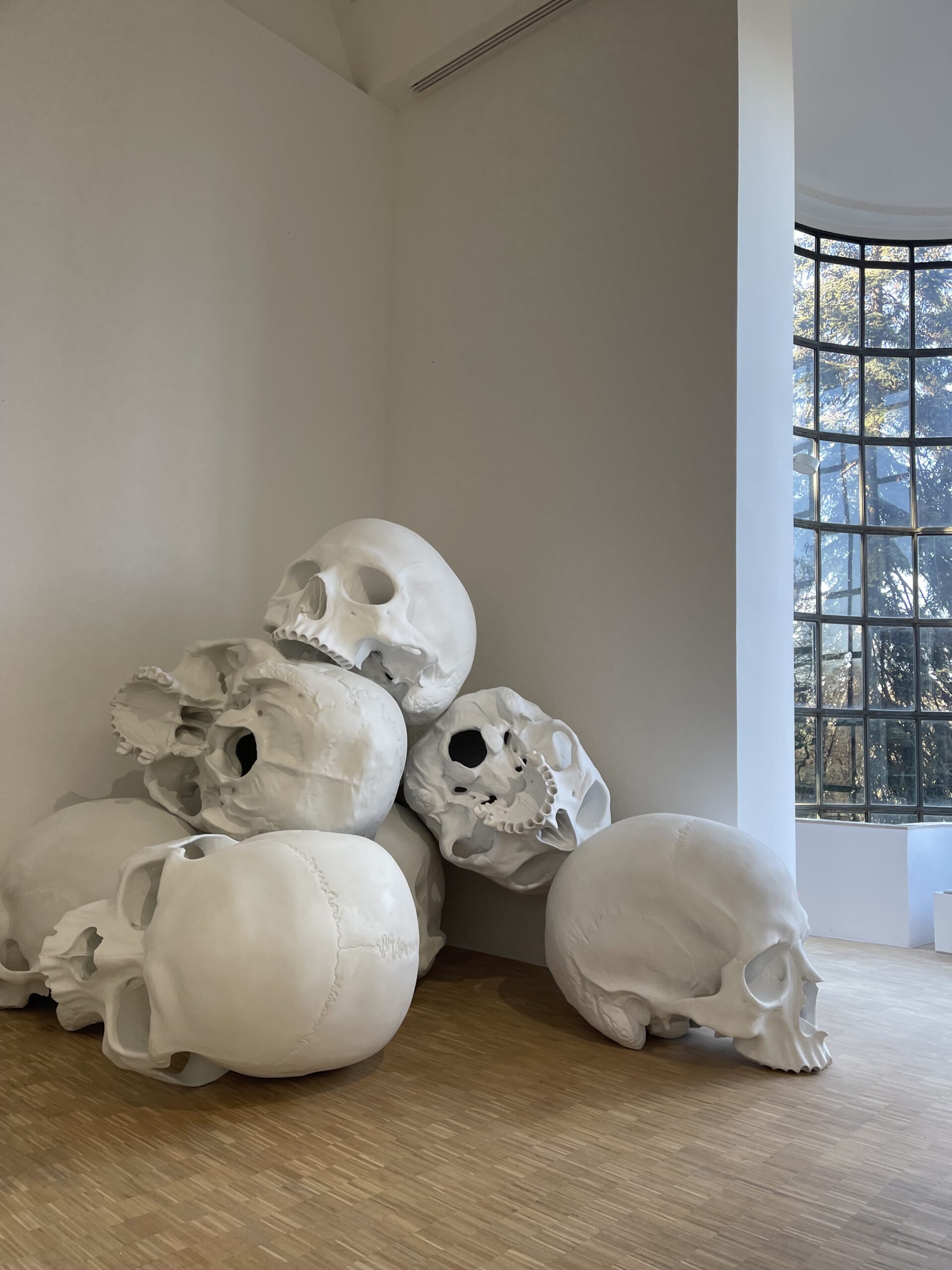 L’opera più stravolgente è però Mass, una sala riempita da cento sculture di teschi umani giganteschi e accumulati in vari punti. L’atmosfera post-apocalittica è influenzata anche dallo spazio, le finestre enormi sul soffitto e le pareti creano infatti dei giochi di luce che cambiano a seconda dell’orario in cui si visita la mostra.