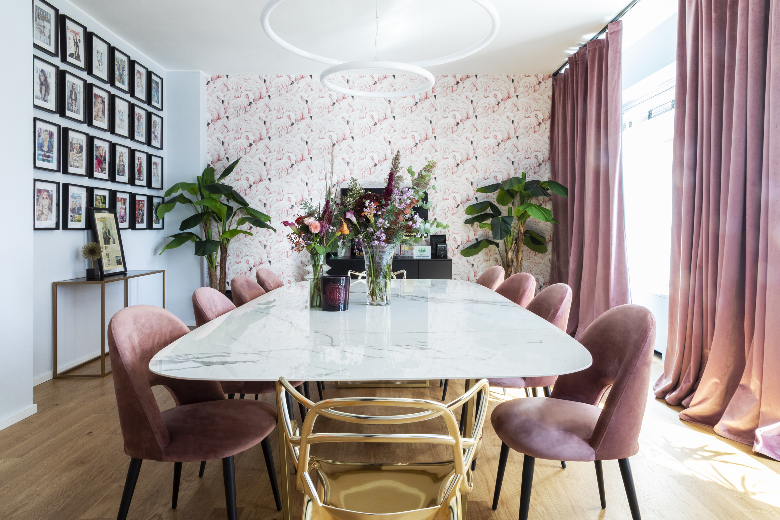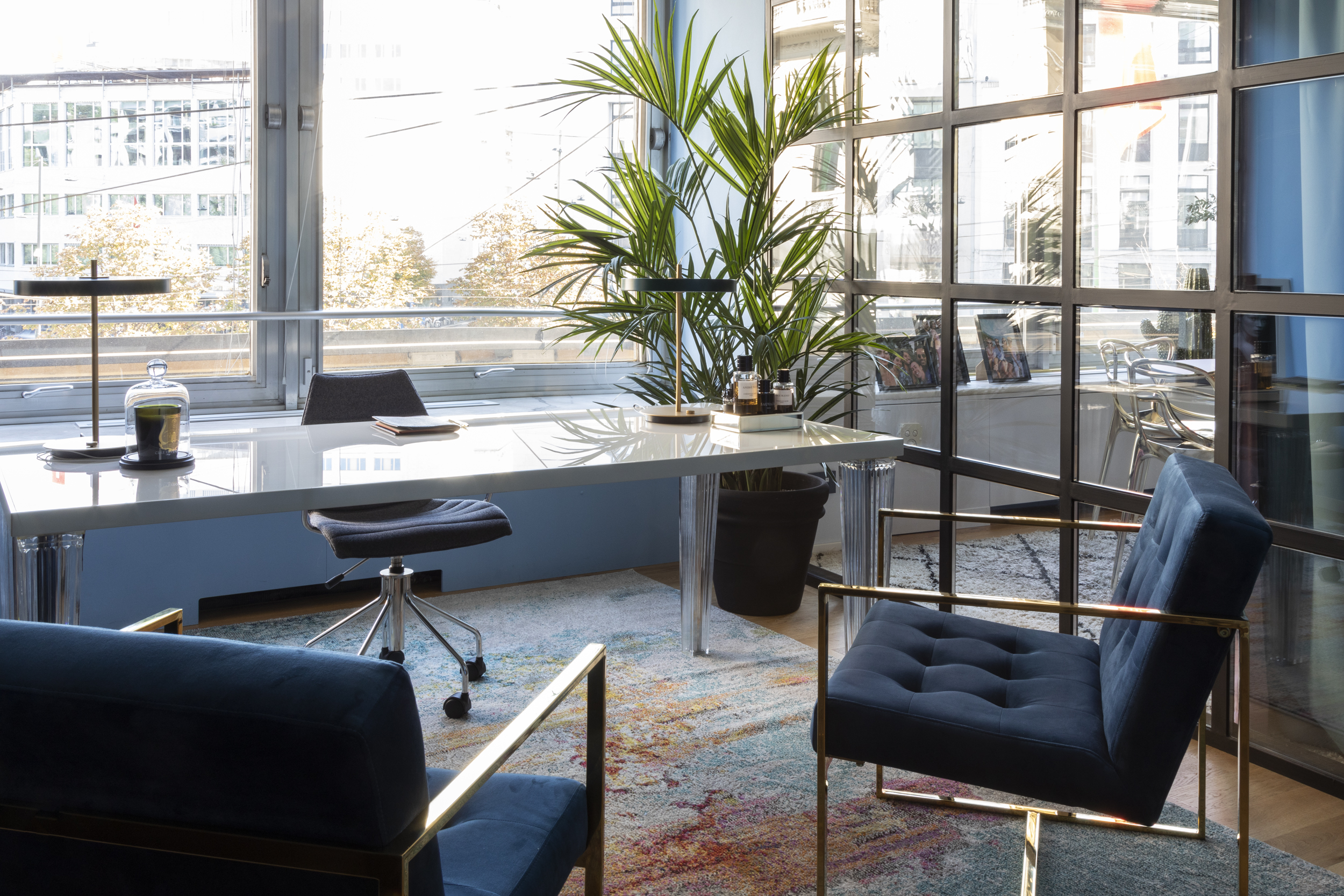 Il team di Westwing ha studiato l’arredo del nuovo ufficio per diverse aree: l’ingresso, la sala Meeting Cover Girl, l’ufficio di Chiara Ferragni e quello del general manager Fabio Maria Damato. Ad essere protagonisti sono alcuni tra i pezzi più iconici della Westwing collection assieme ad una serie di prodotti più moderni, studiati ad hoc affinché si fondessero con il DNA di TBS. All’ingresso ad accoglierci troviamo il Tappeto taftato a mano dalla trama geometrica Freya adornato dai dettagli dorati delle Sedute Chloè e dell’Oggetto decorativo Marball. La sala meeting Cover Girl, inno ai traguardi raggiunti, porta con sé alcuni pezzi iconici Westwing come le Sedie In velluto Rachael e le Lampade da tavolo Miranda in marmo. Per l’ufficio di Chiara Ferragni, invece, Westwing si è ispirato alla sua personalità energica e cool con il grande Tappeto Naima della Westwing Collection e l’iconico Divano in velluto Fluente. L’ufficio di Fabio Maria Damato è un oasi di relax e concentrazione, dal mood boyish ed elegante. Al suo interno troviamo il Tappeto Celestial, le Sedie in velluto Manhattan e piccoli oggetti decorativi come i vasi sulla consolle.