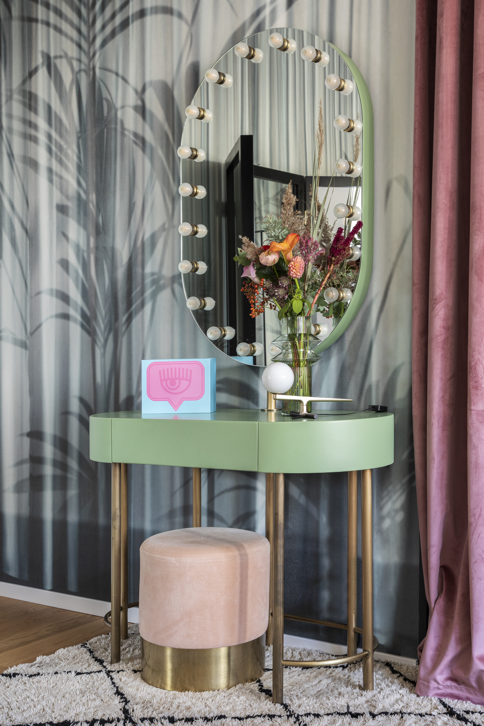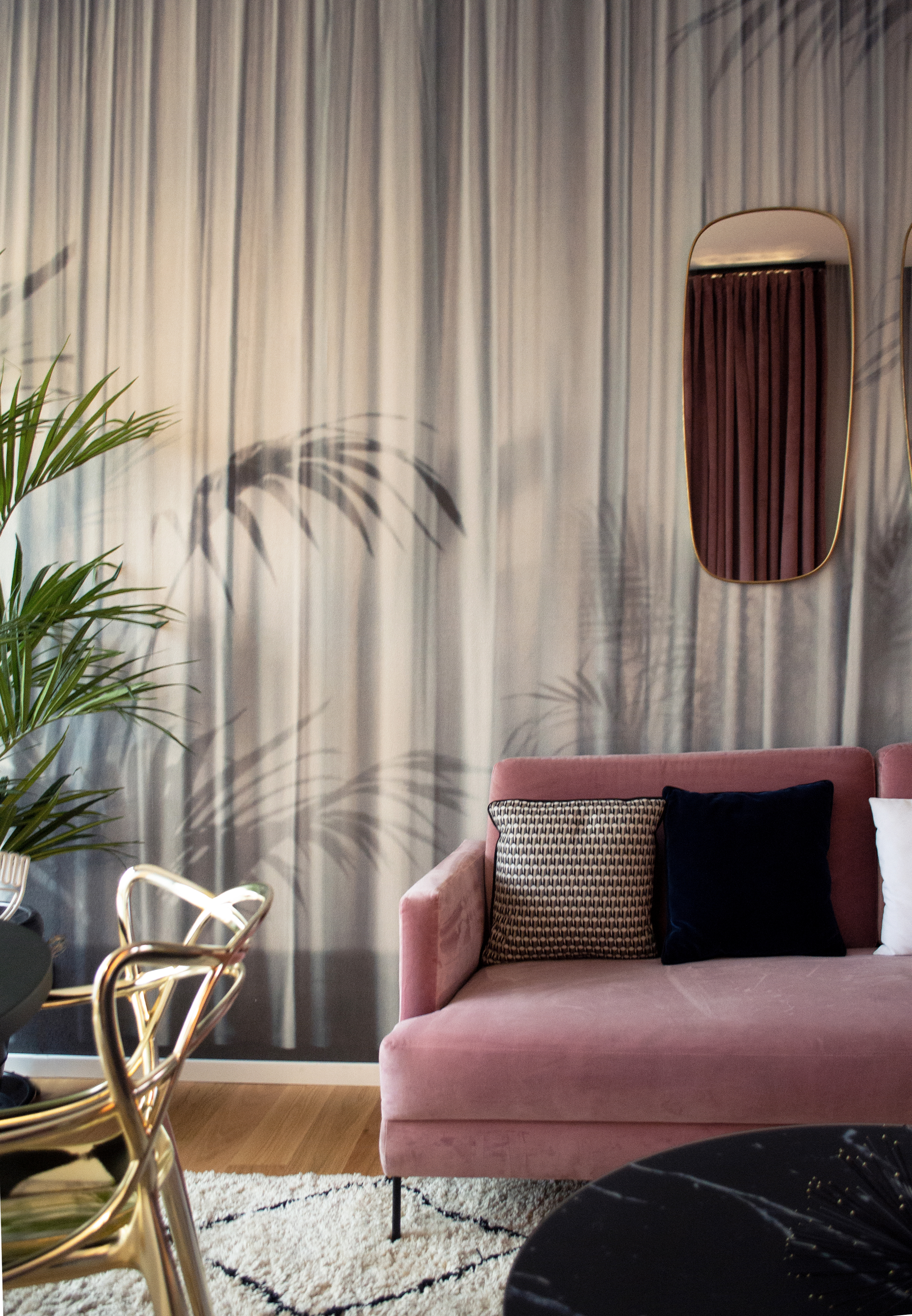 Dal design inconfondibile di Lorenzo De Grandis, la carta da parati Elisir di Wall&decò ha dato senza dubbio un tocco sofisticato ed estremamente cool all’ufficio di Chiara Ferragni. Le ombre delle palme sulla trama drappeggiata richiamano lo stile californiano e spiccatamente glamour della CEO di TBS Crew.