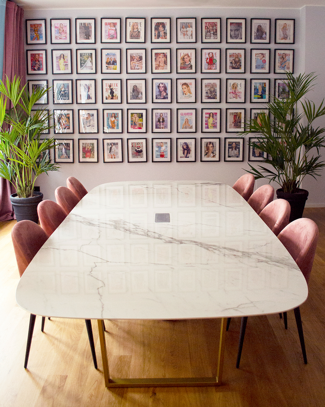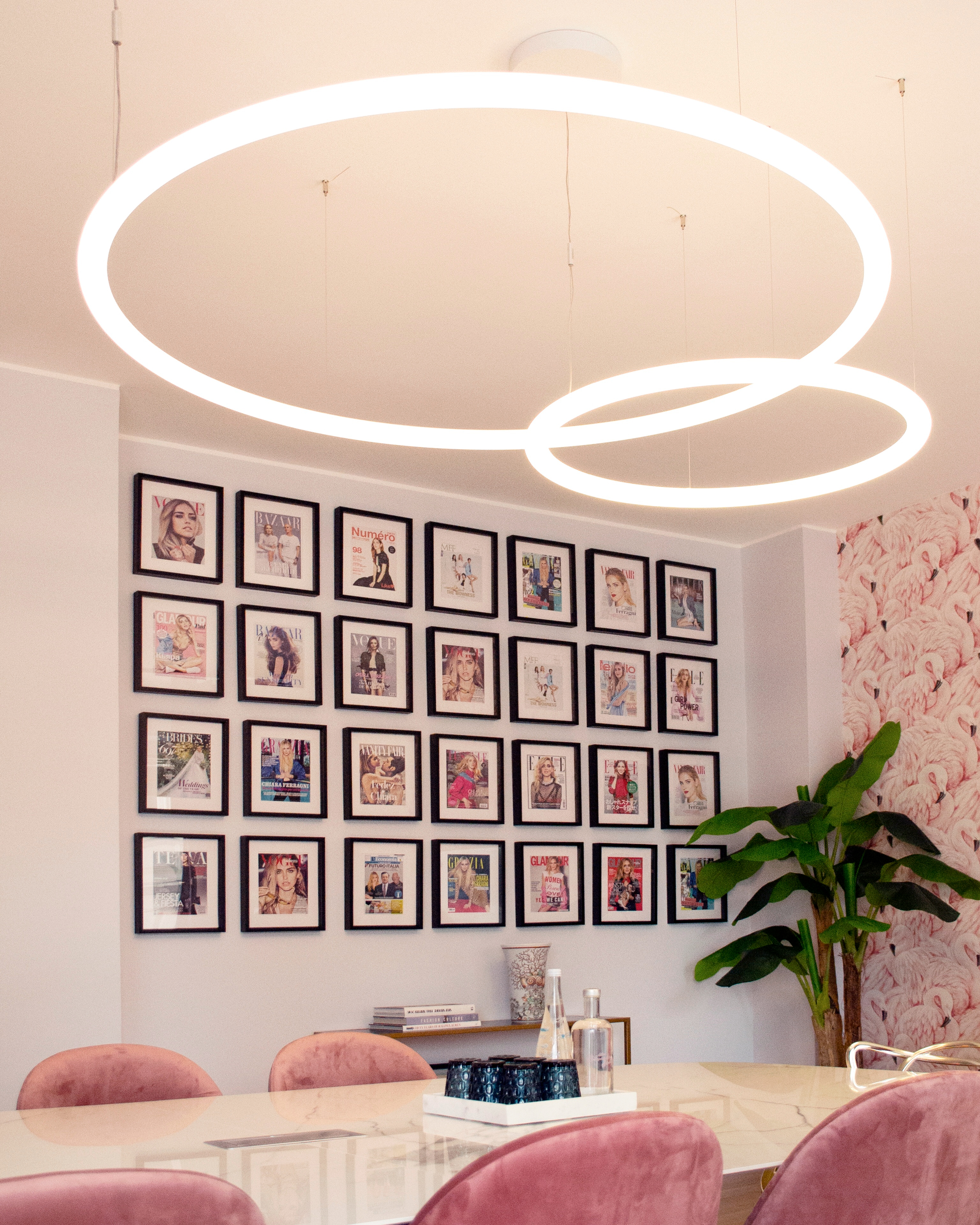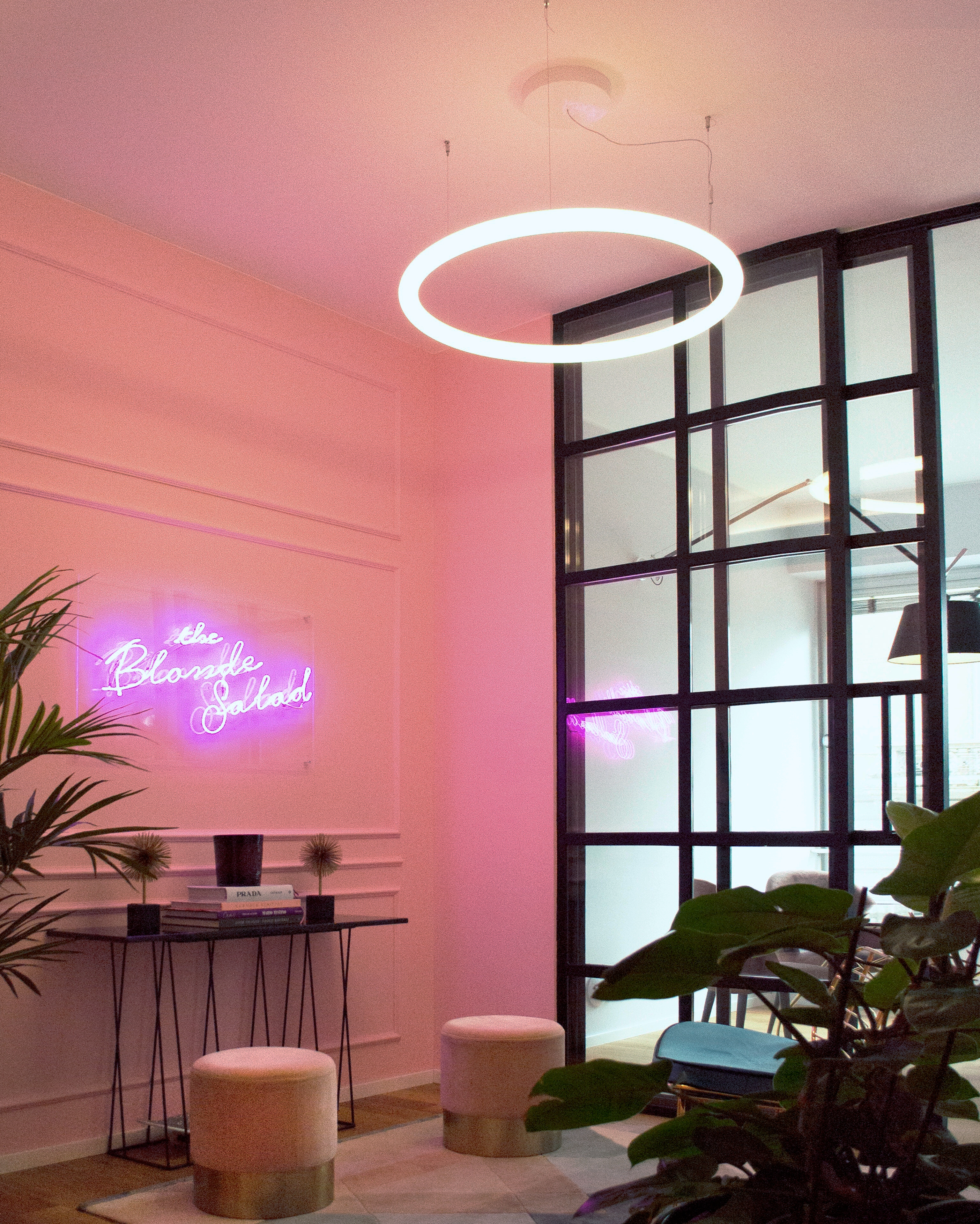 Situato nel cuore di Milano, l’ufficio di TBS Crew ha da poco inaugurato la sua nuova sede. I nuovi spazi sono un connubio di design e fashion ottenuto grazie al supporto di partner leader nel settore dell’arredamento. Linee minimal si fondono al carattere distintivo non solo di Chiara Ferragni, CEO e fondatrice dell’azienda, ma a quello ormai iconico di TBS, il magazine online e talent agency che ha fatto del suo stile unico un marchio di fabbrica. Il rosa, da sempre protagonista dell’estetica TBS Crew, è sempre il fil rouge, o forse dovremmo dire rose, di questo nuovo ufficio disegnato da Erker Studio che si è leggermente svestito del suo mood girly per adottare uno stile più pop, professionale ed incredibilmente fashion. Ad accogliere i clienti ed ospiti c’è ancora l’immancabile ed iconico neon The Blonde Salad che fa da ingresso ad una piccola sala di accoglienza vetrata, a sinistra un ampio corridoio ospita le stanze degli uffici di Chiara Ferragni, e dei vari team, oltre che la cucina ed i servizi; mentre a destra due spaziose e lussuose meeting rooms, tra cui l’inconfondibile Cover Girl Meeting Room. La realizzazione di questo nuovo ufficio da sogno è stata resa possibile, come già anticipato, da una serie di partner d’eccezione che hanno tradotto in design l’idea stilistica di Chiara Ferragni e del suo team. Siete curiosi di conoscerli e fare un tour all’interno della nuova casa di TBS?