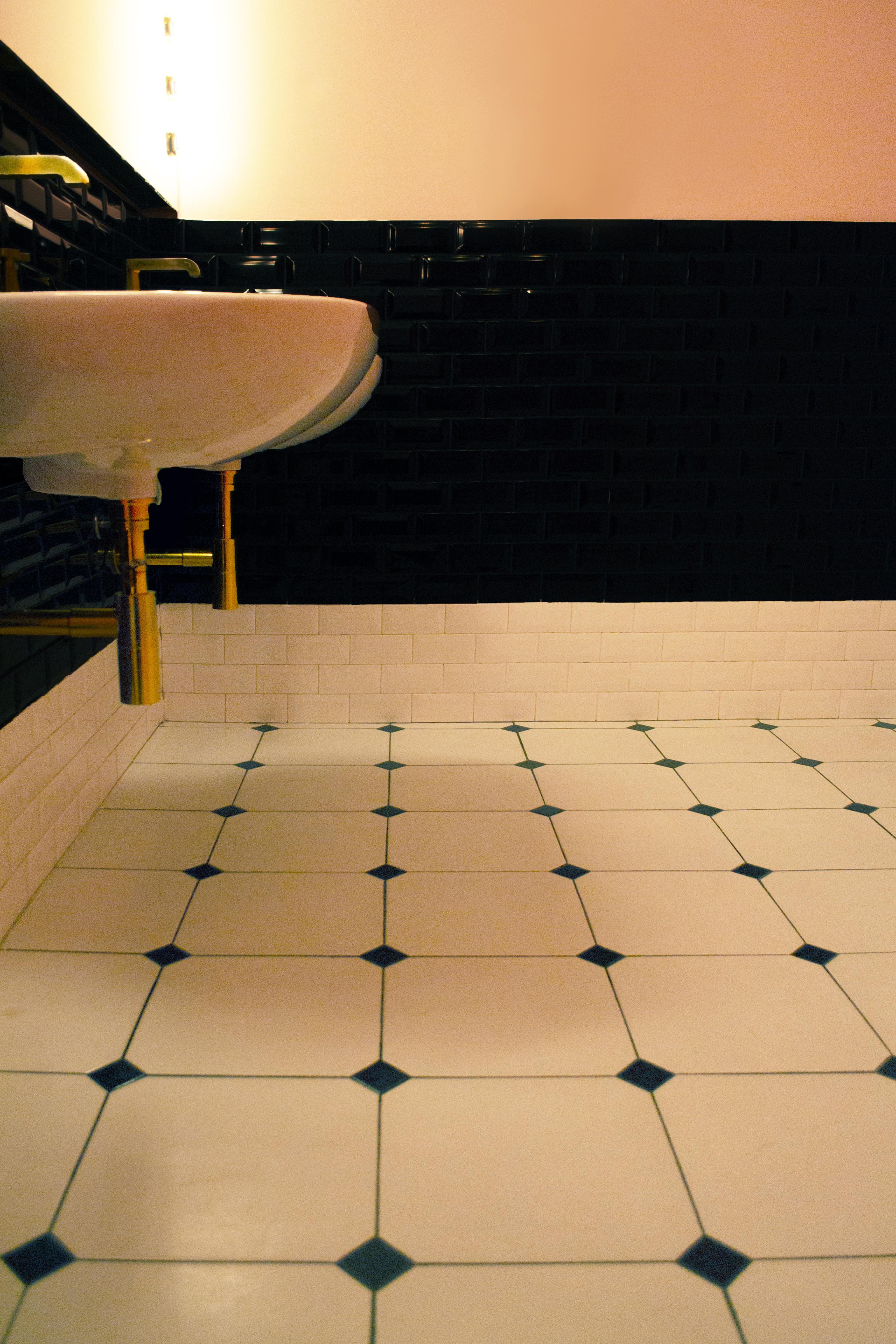 piastrelle ottagonali bianche 30×30 cm e dai “tozzetti” neri 5×5 cm della collezione Stucchi. Anche il rivestimento murale gioca sul contrasto bianco e nero con le piastrelle tridimensionali dalla forma diamantata 7,5×15 cm della collezione Trapunta. Queste particolari piastrelle si ispirano ai rivestimenti usati nei primi anni del ‘900 per le stazioni della metropolitana di Parigi (da qui chiamate anche “carreaux métro”). Le diamantine sono diventate successivamente un must nell’interior design europeo degli anni ’50 e ’70 e nuovamente un elemento di arredo sempre più ricercato nei moodboard degli interior designer.