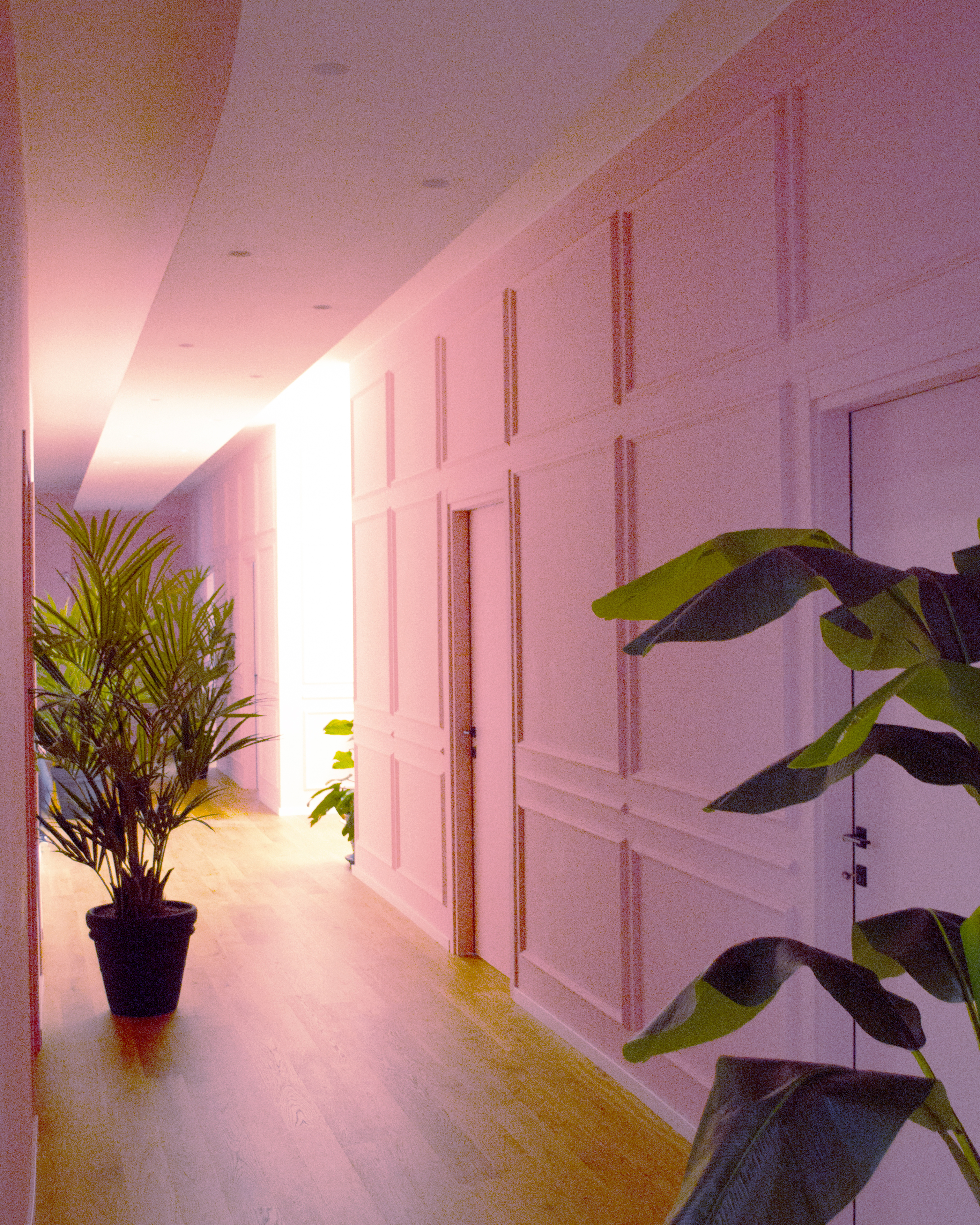 Wilson&Morris, maestri nell’arte della pittura decorativa. É loro il merito del già amatissimo enorme corridoio rosa che fa da padrone all’intero ufficio nonché delle pareti color ottanio della stanza del general manager Fabio Maria Damato.