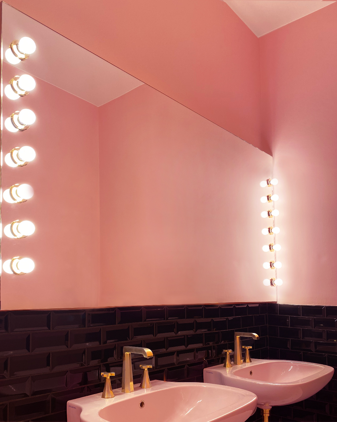 Dall’inconfondibile design ispirato alle fitting room fashion, lo specchio di Vetreria Re ha dato all’ufficio TBS Crew un mood iconico e glamour. Una serie di light bulbs fanno da cornice ad un’enorme specchio rettangolare che, si sa, è l’elemento must-have di ogni ufficio di moda che si rispetti.