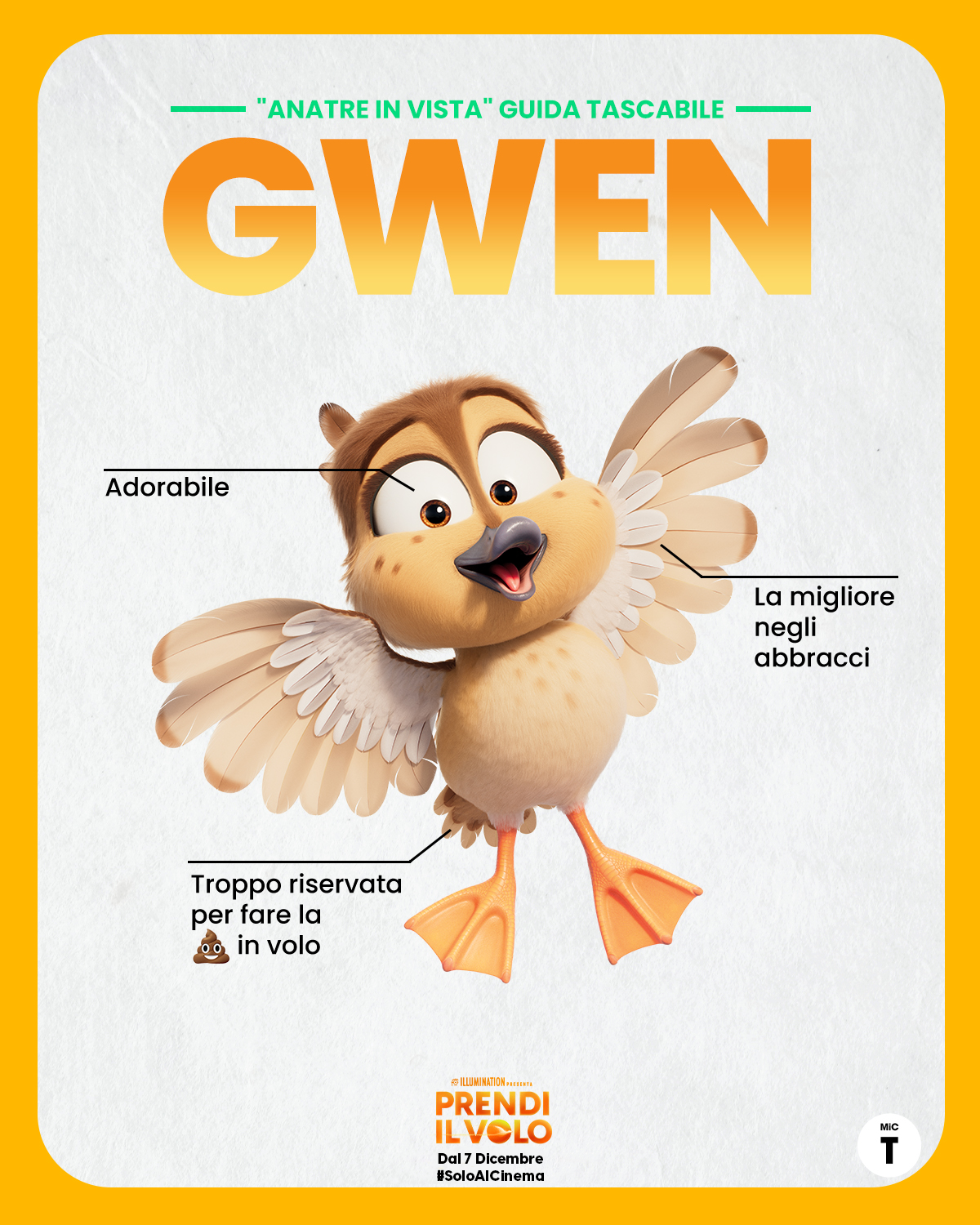 Il grande pregio di Prendi il volo è che si tratta di un film che divertirà tutta la famiglia, non è semplicemente un film di animazione dedicato ai più piccoli, saprà toccare anche le corde anche di chi accompagna i più piccini in sala, proprio perché le dinamiche familiari applicate al mondo animale sono irresistibili e ogni protagonista ha un carattere specifico e un arco narrativo in cui ritrovarsi: Gwen e Dax i più giovani e intraprendenti, Mack e Pam papà iper-protettivo e mamma intraprendente e poi il burbero zio Dan.