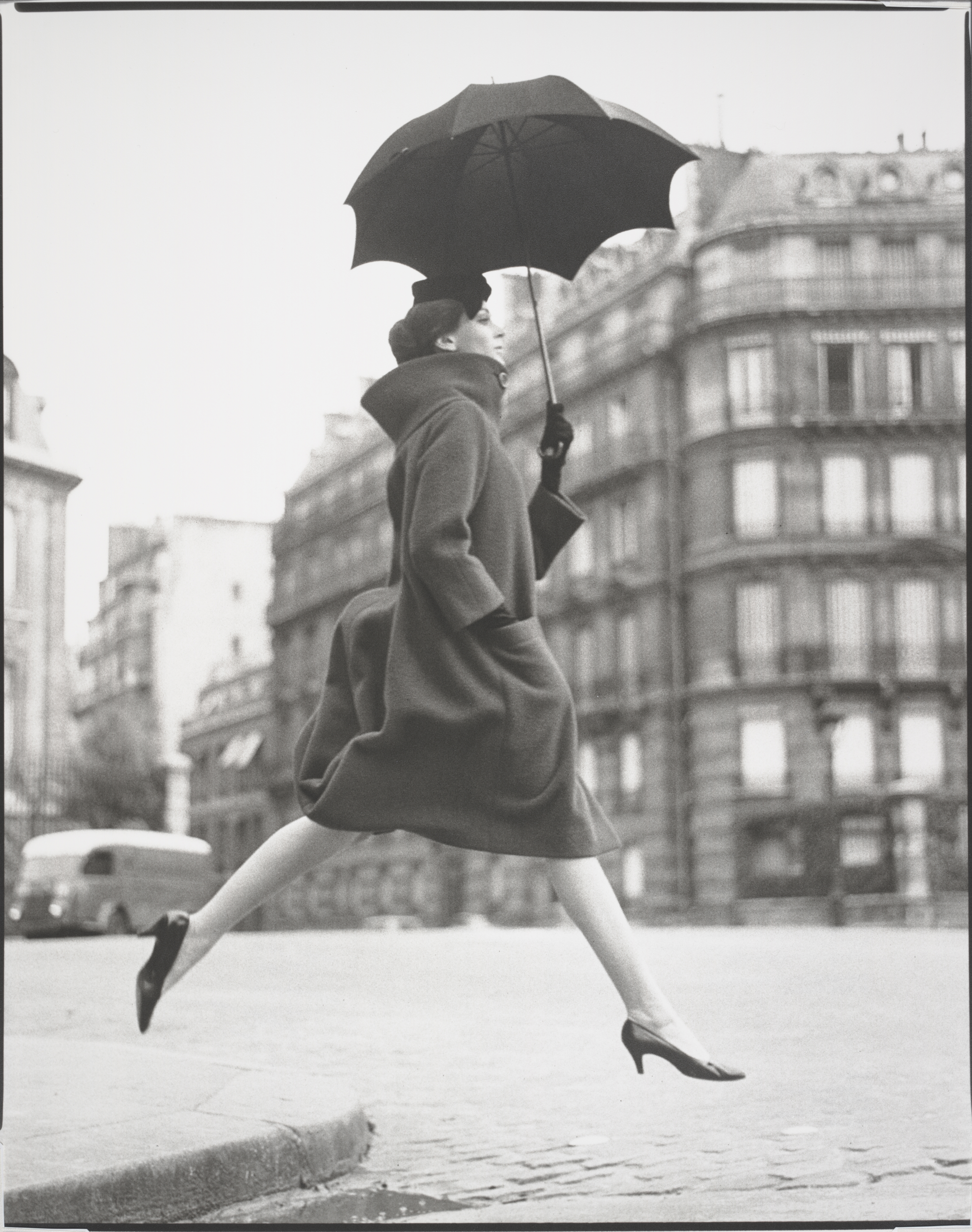 - Richard Avedon, Carmen (homage to Munkácsi), coat by Cardin, Place François – Premier, Paris, August 1957