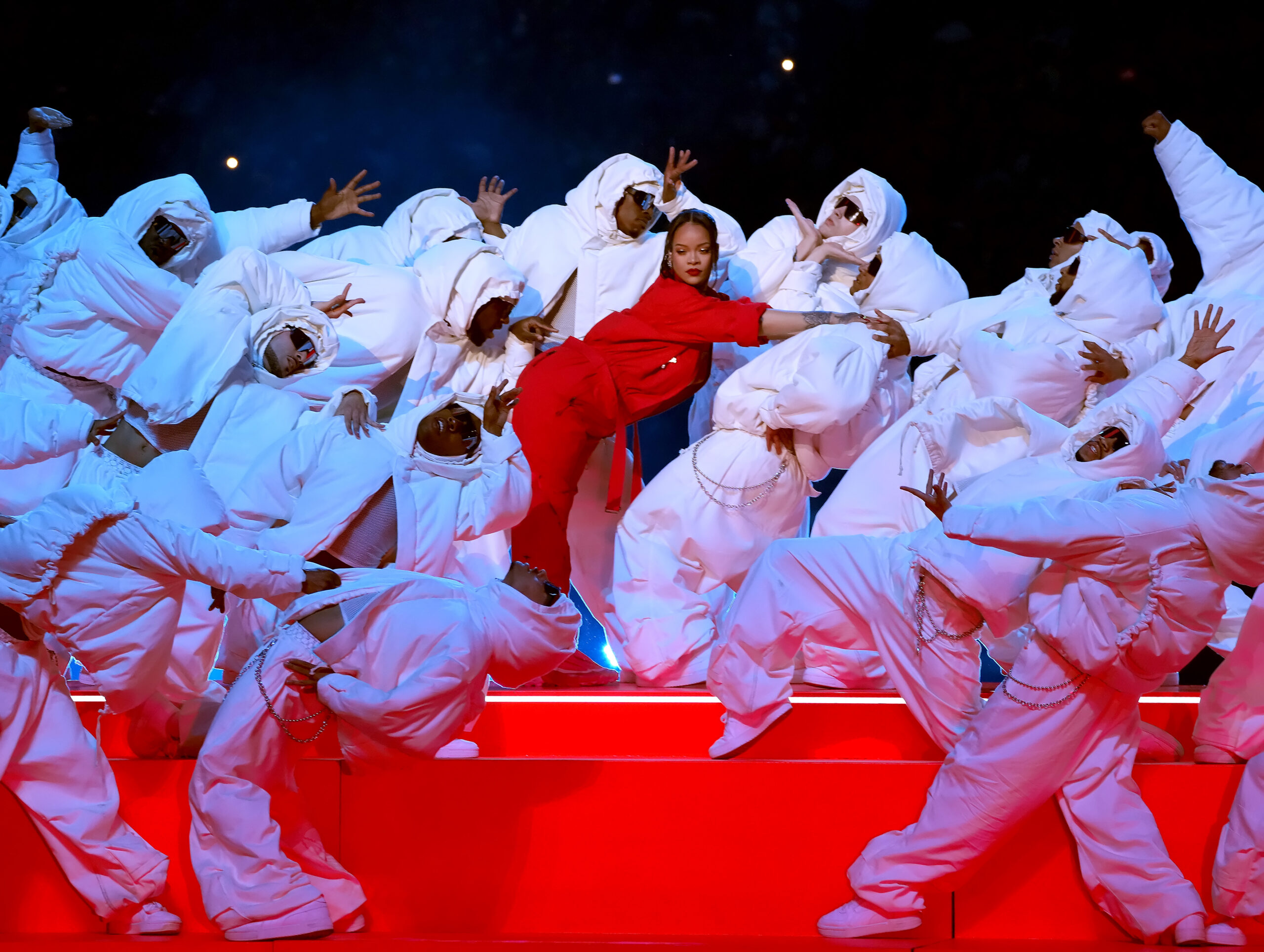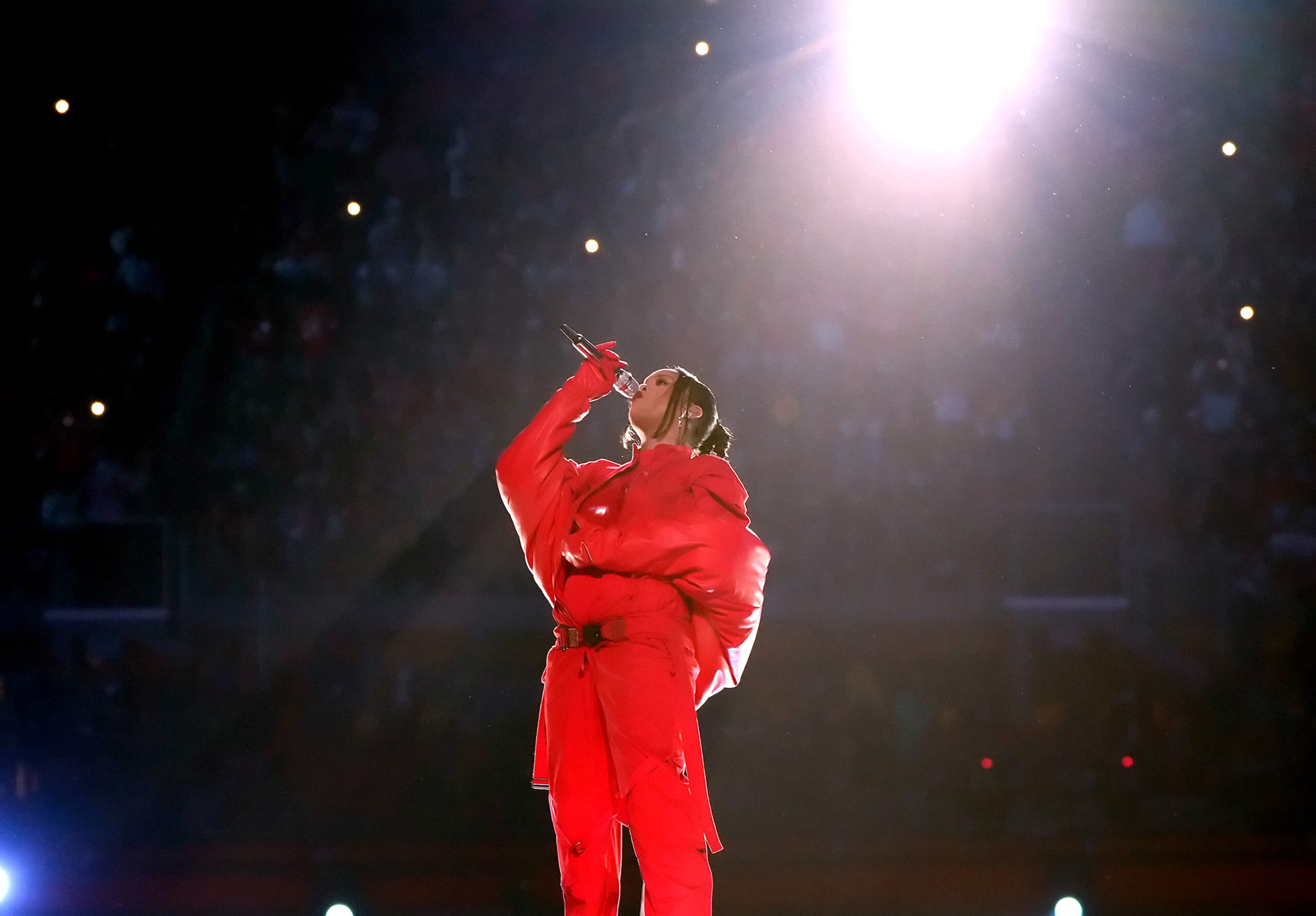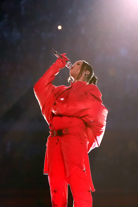 - GLENDALE, ARIZONA – FEBRUARY 12: Rihanna performs during Apple Music Super Bowl LVII Halftime Show at State Farm Stadium on February 12, 2023 in Glendale, Arizona. (Photo by Kevin Mazur/Getty Images for Roc Nation)