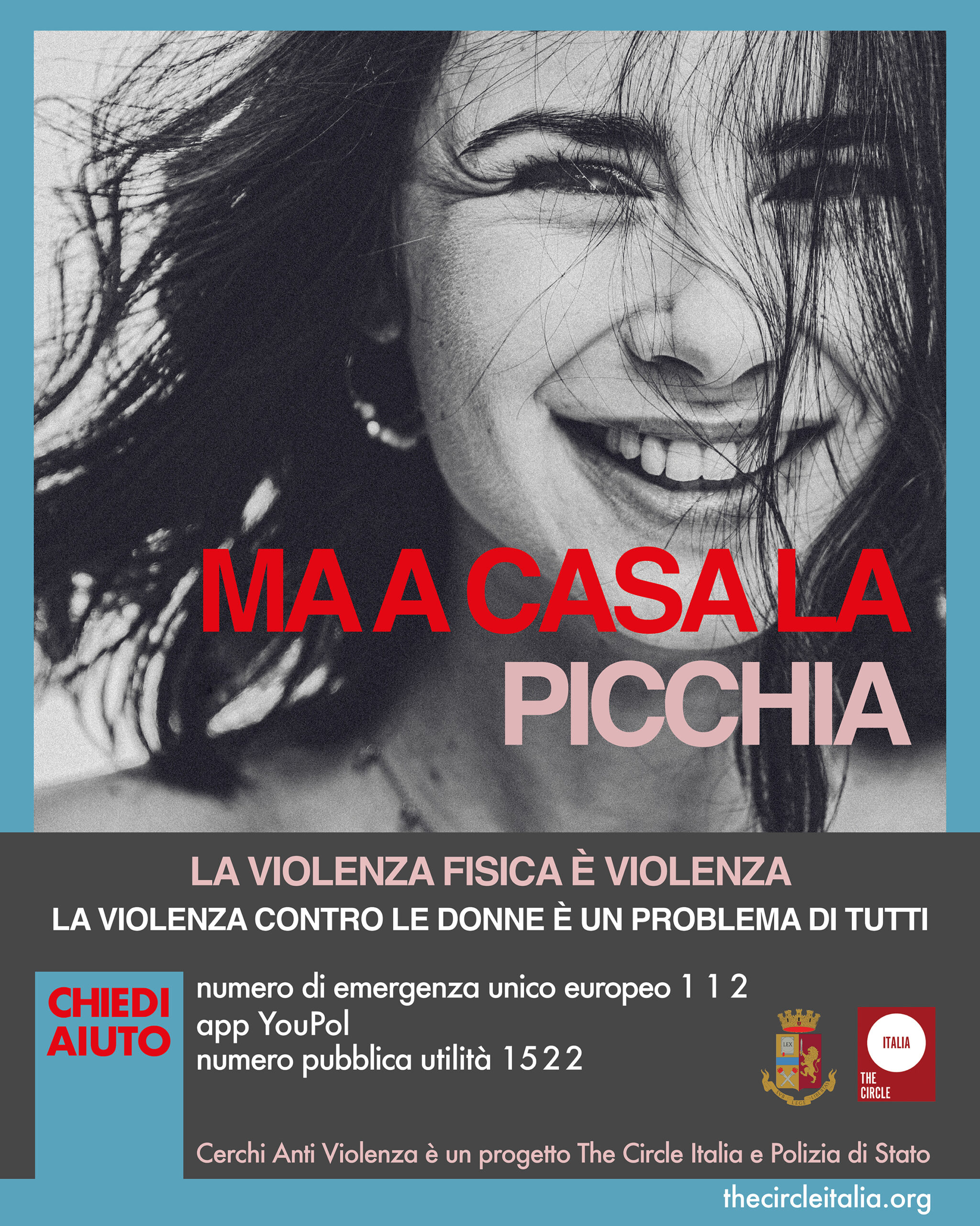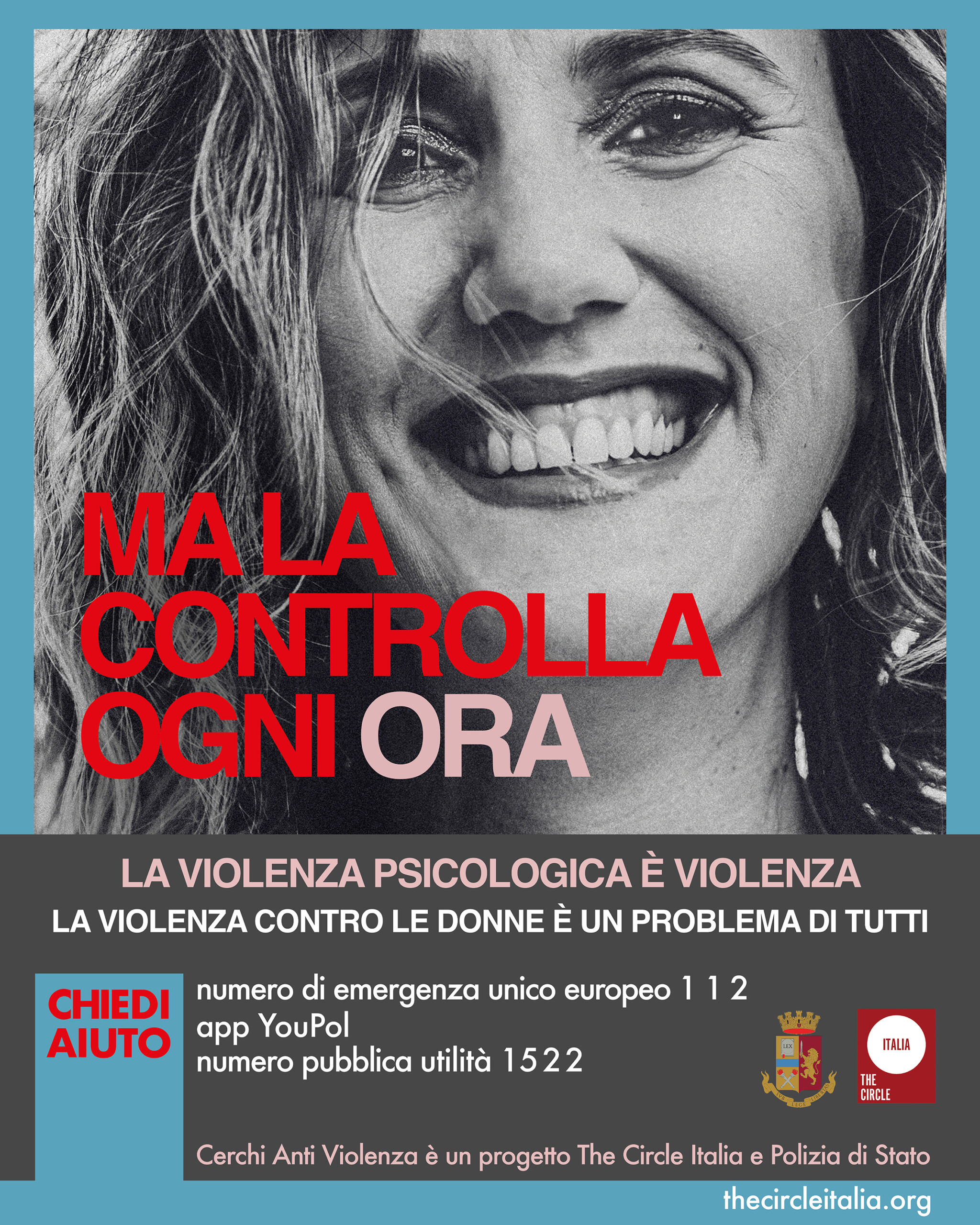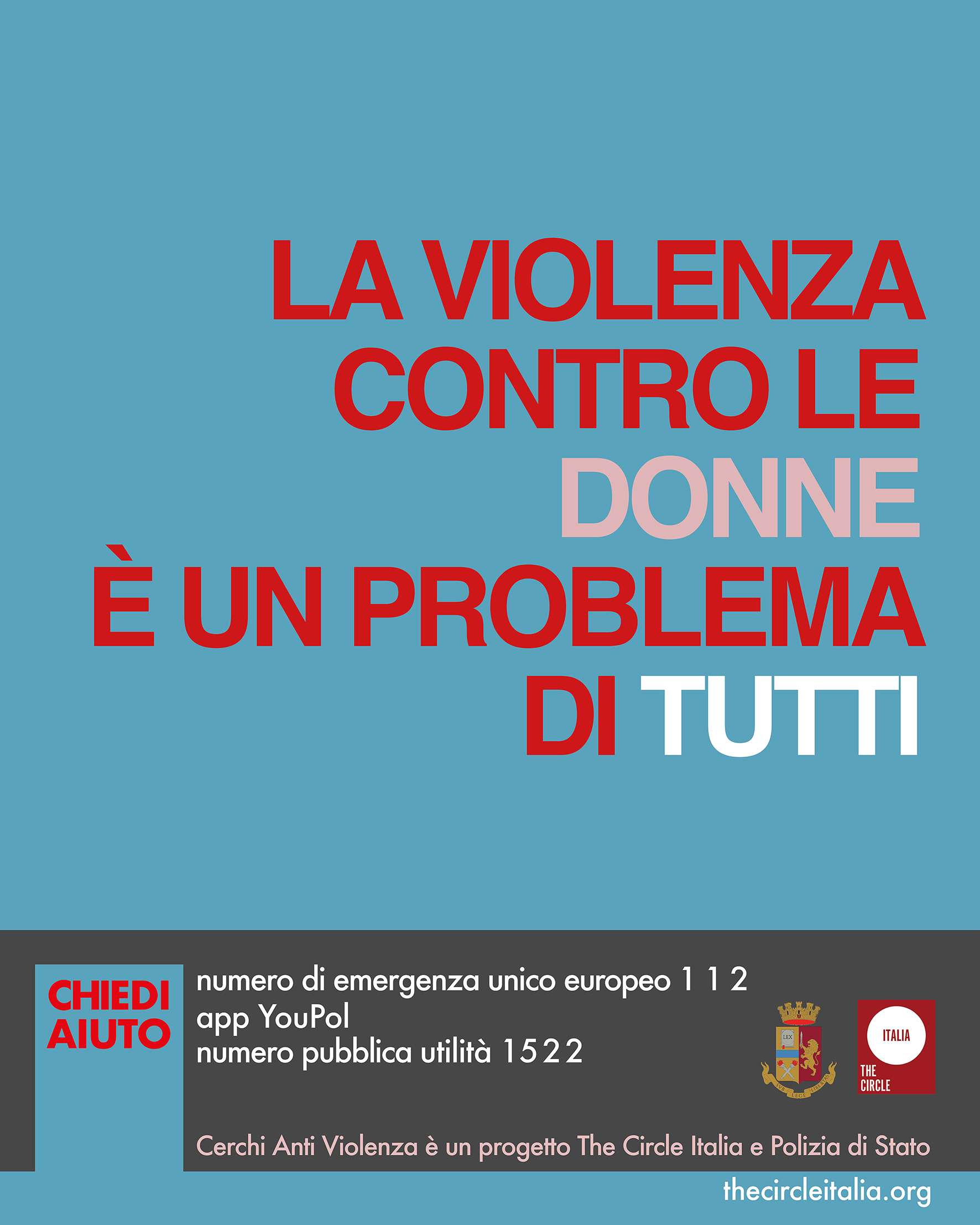 CERCHI ANTI VIOLENZA è il protocollo d’intesa che vede la collaborazione tra The Circle Italia Onlus e Polizia di Stato, un progetto destinato a diverse fasce di pubblico composto da appuntamenti per operatori del settore impegnati sul campo, momenti di sensibilizzazione per studenti delle scuole superiori, punti informativi destinati ai cittadini e una campagna di sensibilizzazione diffusa online e offline su tutto il territorio nazionale.