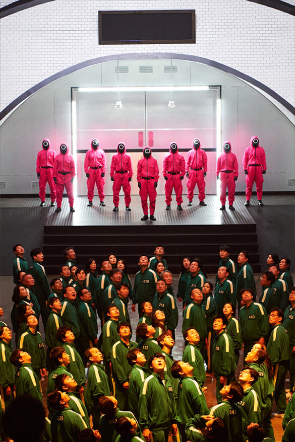 Squid Game racconta uno spaccato della Corea del Sud, in modo nuovo e ammaliante, accostando immagini di morte a note di musica classica, nello stile un po’ anni ’90 di Arancia Meccanica. I tempi del racconto sono alternatiti e a ritmo incostante, si passa da racconti lenti e profondi a momenti in cui la trama viene ribaltata nel giro di pochissimi minuti, mantenendo sempre alta l’attenzione dello spettatore.