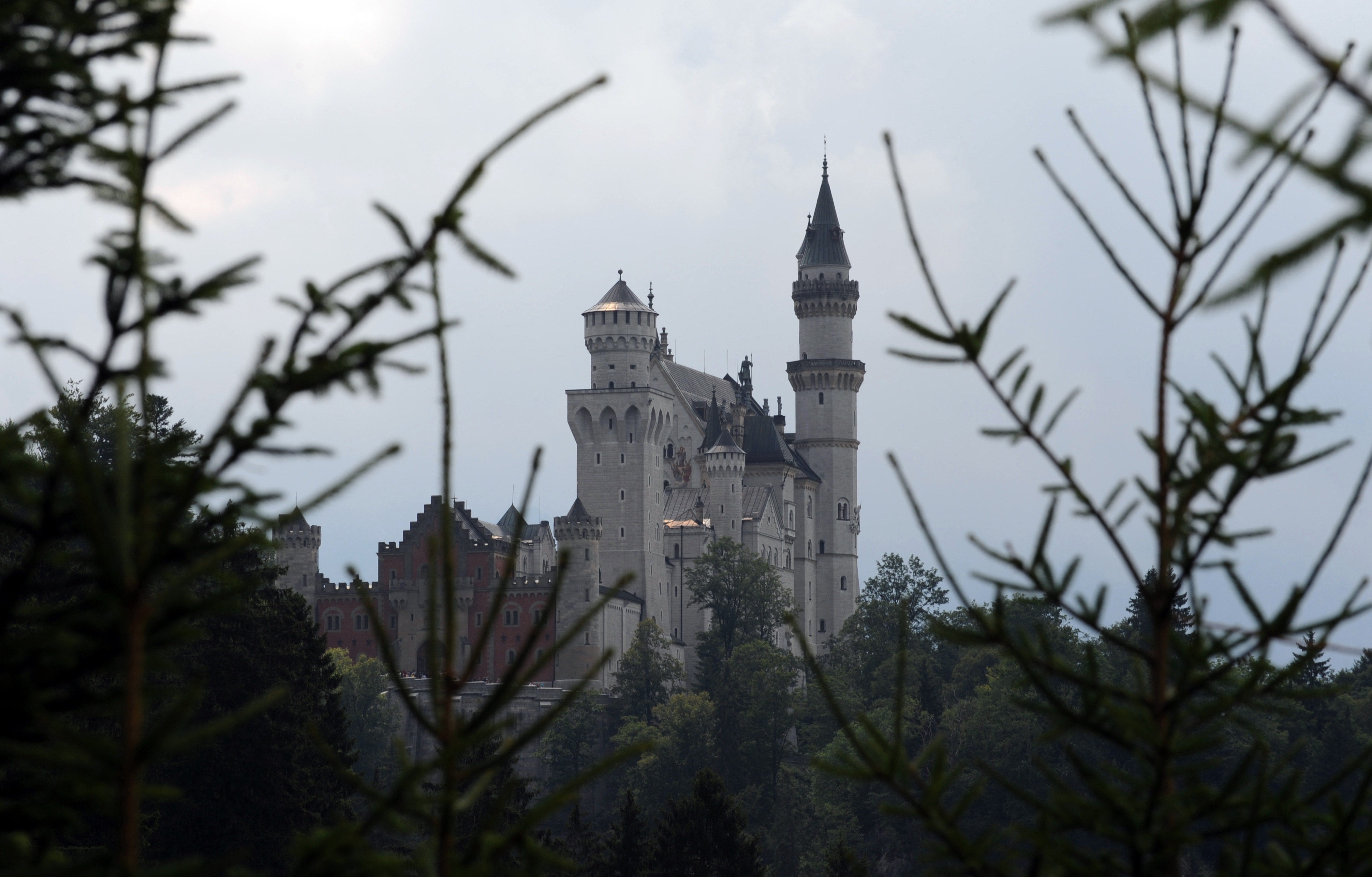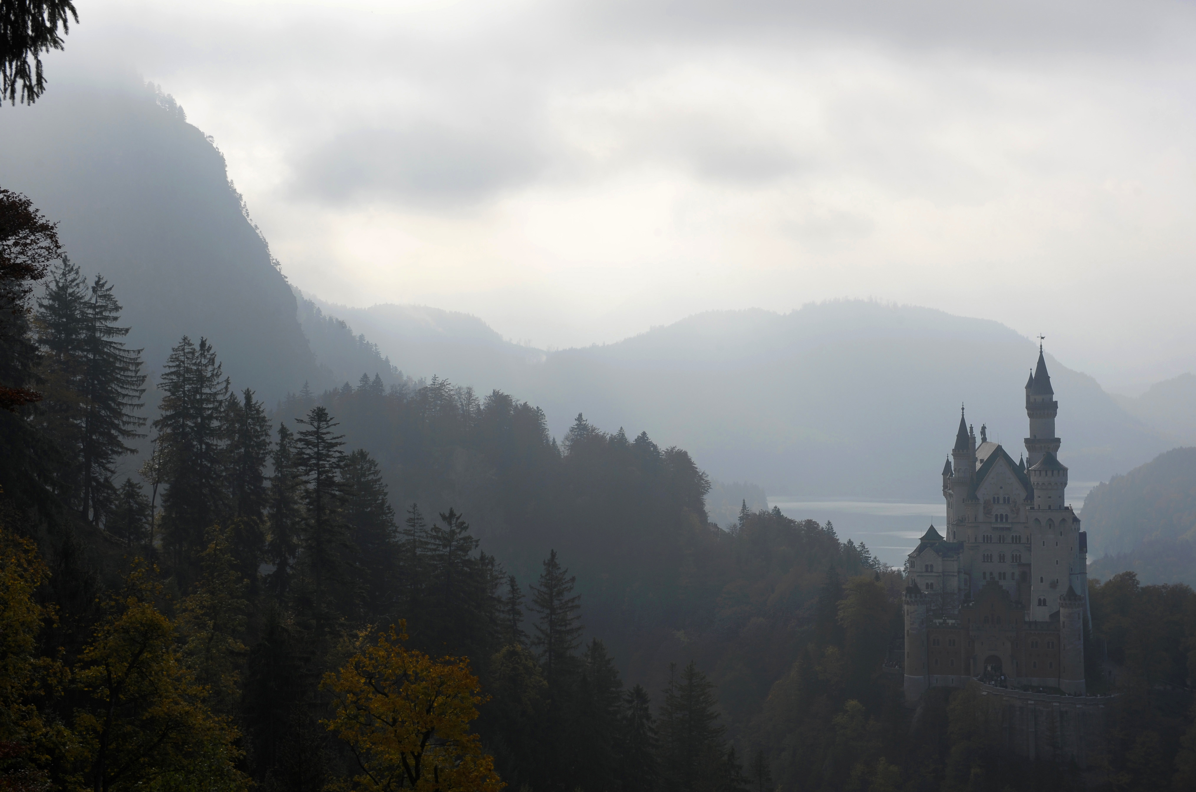 - The castle Neuschwanstein near Fuessen, in the Allgaeu Alps mountains, southern Germany, is seen in autumn atmosphere and foggy weather on October 11, 2010. Castle Neuschwanstein is a 19th-century Romanesque Revival palace on a hill above the village of Hohenschwangau near Fuessen. The palace was commissioned by Ludwig II of Bavaria as a retreat and as a homage to German musician Richard Wagner. The palace was opened to the public immediately after his death in 1886. Since then more than 1.3 million people visit the castle annually, with up to 6.000 per day in the summer. AFP PHOTO / CHRISTOF STACHE (Photo credit should read CHRISTOF STACHE/AFP via Getty Images)