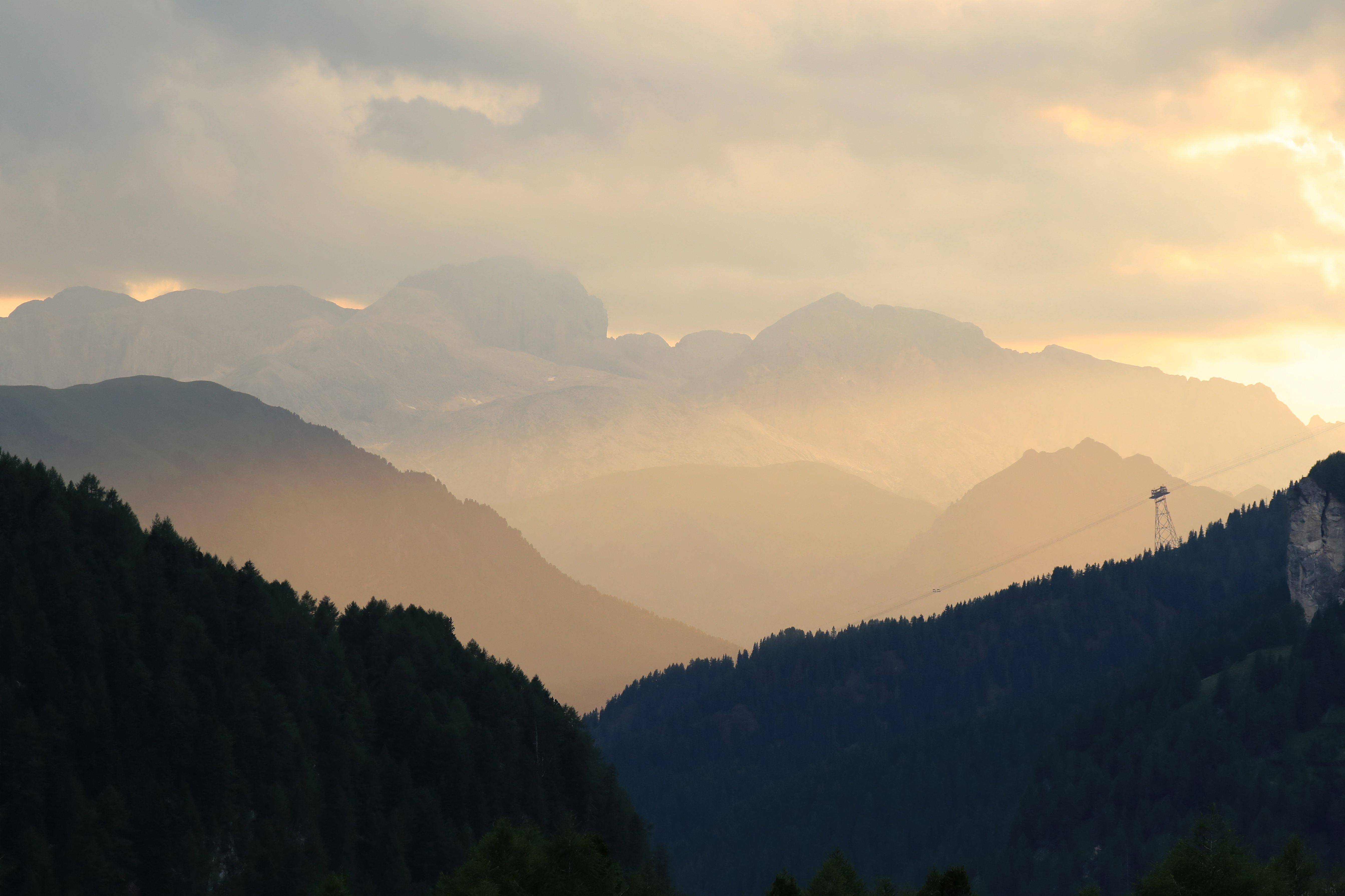 - This photograph taken on July 3, 2022 from Canazei, shows the sunset close to the Marmolada mountain, near Punta Rocca, where the collapse of an ice serac killed six people. – An avalanche set off by the collapse of the largest glacier in the Italian Alps killed at least six people and injured eight others on July 3, 2022, an emergency services spokeswoman said. The glacier collapsed on the mountain of Marmolada, the highest in the Italian Dolomites, near the hamlet of Punta Rocca, on the route normally taken to reach its summit. (Photo by Pierre TEYSSOT / AFP) (Photo by PIERRE TEYSSOT/AFP via Getty Images)