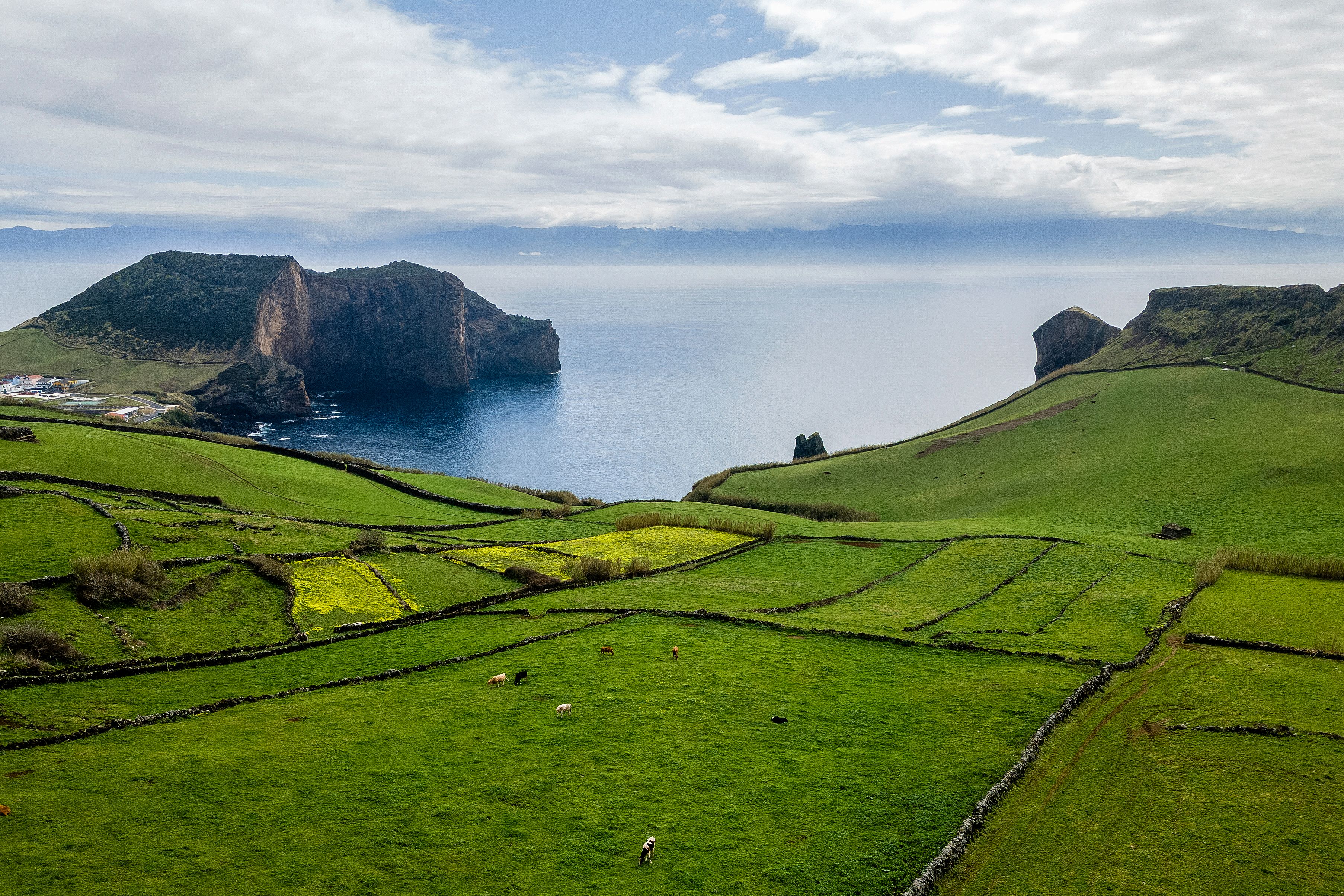 - This photograph shows an aerial view of Rosais, on Sao Jorge island, in the Portuguese archipelago of the Azores on March 30, 2022. – Sao Jorge island, of the Portuguese archipelago of the Azores, has become for a week the epicentre of thousands of small earthquakes that could precede a volcanic eruption. (Photo by Rui SOARES / AFP) (Photo by RUI SOARES/AFP via Getty Images)