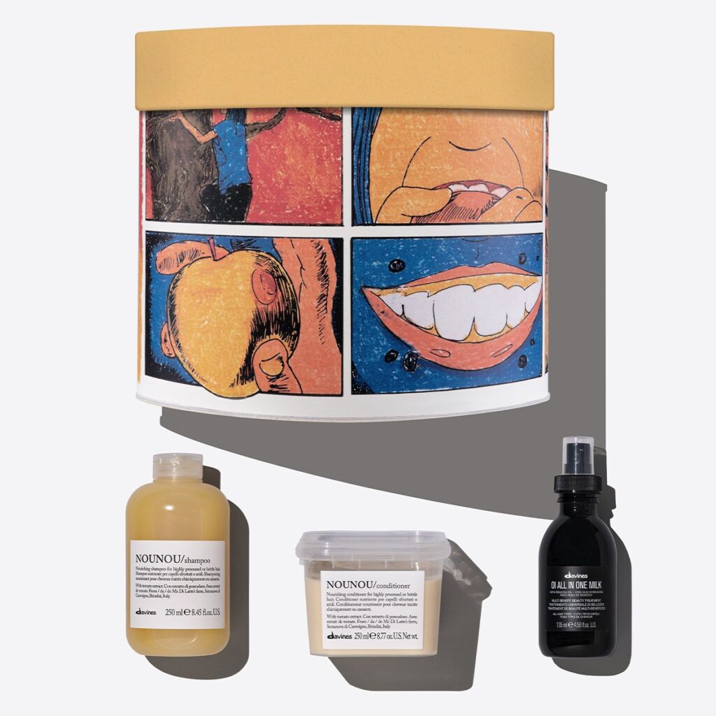 WHAT: Kit per ripristinare la salute dei capelli danneggiati nutrendoli intensamente. Include shampoo, balsamo e trattamento in crema.