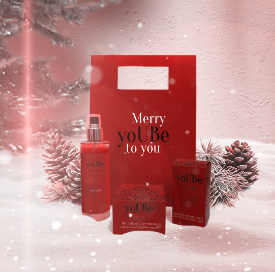 WHAT: Kit natalizio con crema viso idratante anti-age con Veg Botox complex, crema contorno occhi e labbra anti-age con Veg Botox complex e acqua profumata.