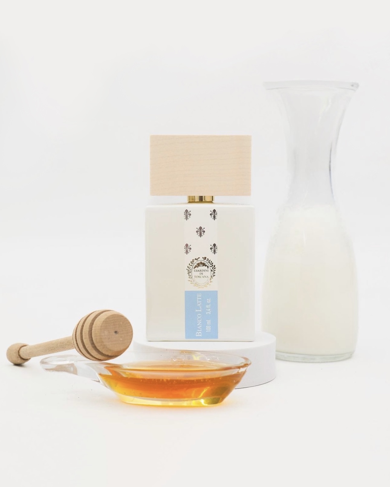 Silvia Martinelli trova l’ispirazione per le sue creazioni negli amati giardini, dove gli odori aprono porte verso nuovi mondi e ricordi preziosi. È da questa passione che nasce la fragranza Bianco Latte, una coccola profumata, un abbraccio avvolgente che porta con sé note di vaniglia, latte e miele. Questa fragranza così speciale appartiene alla famiglia delle fragranze ambrate e gourmand – ovvero quei profumi che contengono note dolci e golose. Bianco Latte presenta una nota di testa al caramello, seguita dalle note di cuore di cumarina e miele, poi, tra le note di base, troviamo vaniglia e muschio bianco.