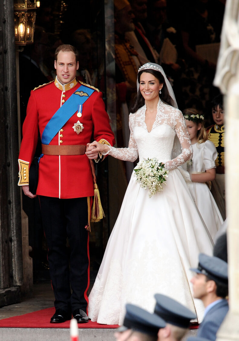 - LONDON, ENGLAND – APRIL 29: Their Royal Highnesses Prince William Duke of Cambridge and Catherine Duchess of Cambridge exit Westminster Abbey after their Royal Wedding on April 29, 2011 in London, England. The marriage of the second in line to the British throne is to be led by the Archbishop of Canterbury and will be attended by 1900 guests, including foreign Royal family members and heads of state. Thousands of well-wishers from around the world have also flocked to London to witness the spectacle and pageantry of the Royal Wedding. (Photo by Ian Gavan/GP/Getty Images)