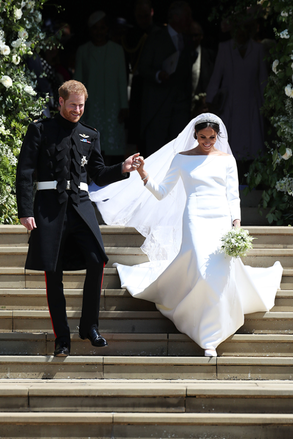 - WINDSOR, UNITED KINGDOM – MAY 19: Prince Harry and Meghan Markle leave St George’s Chapel after their wedding in St George’s Chapel at Windsor Castle on May 19, 2018 in Windsor, England. (Photo by Jane Barlow – WPA Pool/Getty Images)