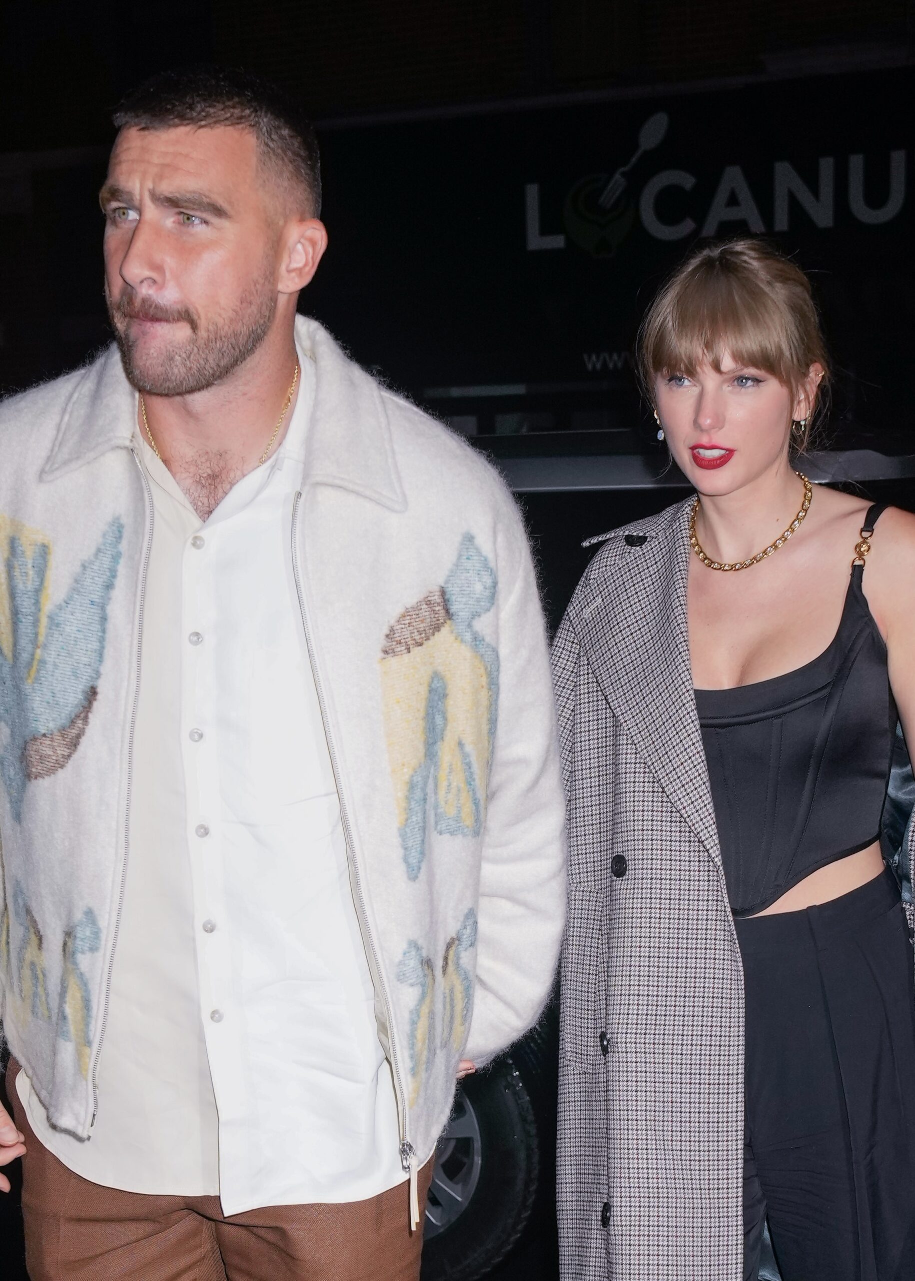 - NEW YORK, NEW YORK – OCTOBER 15: Taylor Swift and Travis Kelce have dinner at Waverly Inn on October 15, 2023 in New York City. (Photo by Gotham/GC Images)